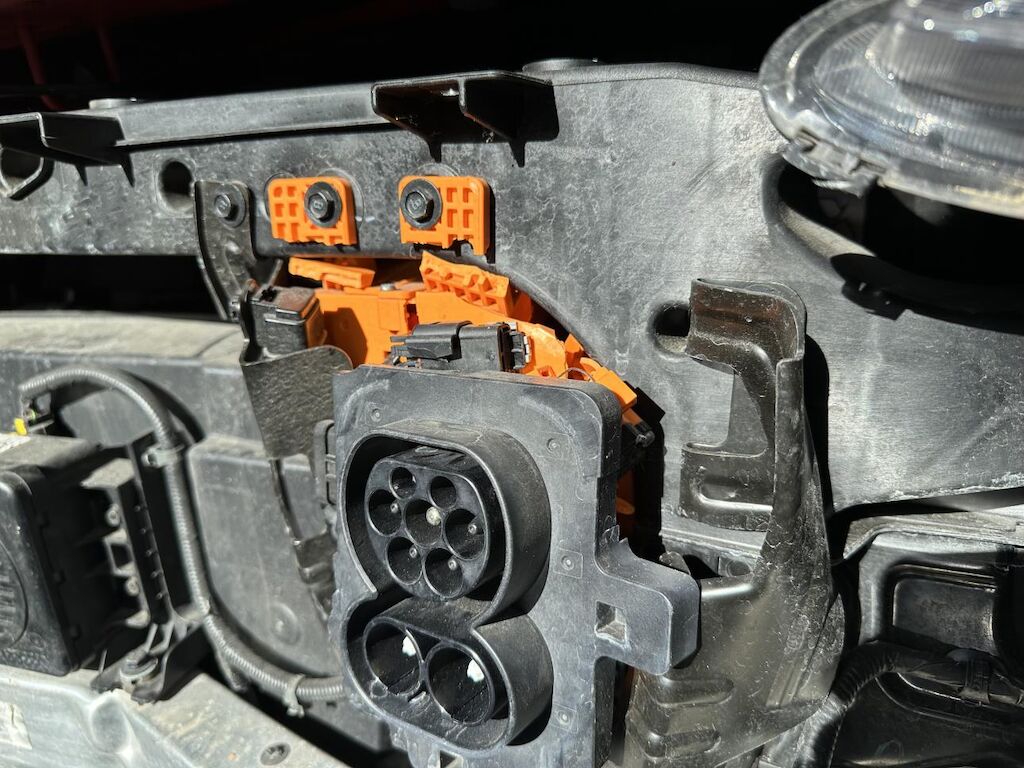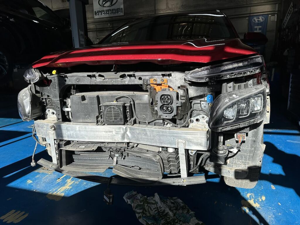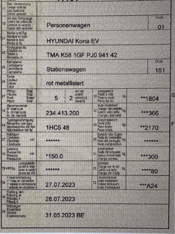 Anprall Front. Dabei wurde die Stossstange vorne mit Anbauteile, der Scheinwerfer links, der Querträger, die Frontmaske, sämtliche Kühler, der Lüfter mit der Halterung und die Ladesteckdose beschädigt. Das Fahrzeug hat diverse Gebrauchsspuren (Dellen und Lackschäden). Motor Getriebe Vorderachse Hinterachse Airbags ausgelöst: 0 unbekannt ( Abfallcode 16.01.04ak )
