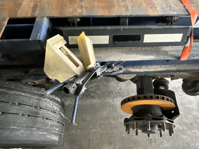 Beim Abbiegen mit Mauer kollidiert und die erste von drei Achsen ausgerissen / Vorbestandene Schäden: Gebrauchsspuren