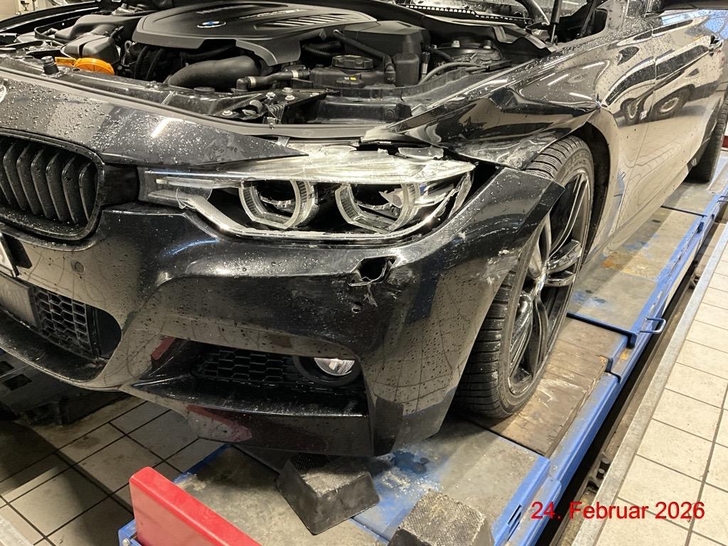 Seite links: Stossstange + Scheinwerfer gebrochen. Kotflügel, Tür vorne, Seitenwand hinten eingedrückt. Stossstange + Schlussleuchte gebrochen. Felgen links zerkratzt. Radaufhängungen verformt. Aufzählung nicht abschliessend / Vorbestandene Schäden: Rückspiegel rechts zerkratzt + Gebrauchsspuren