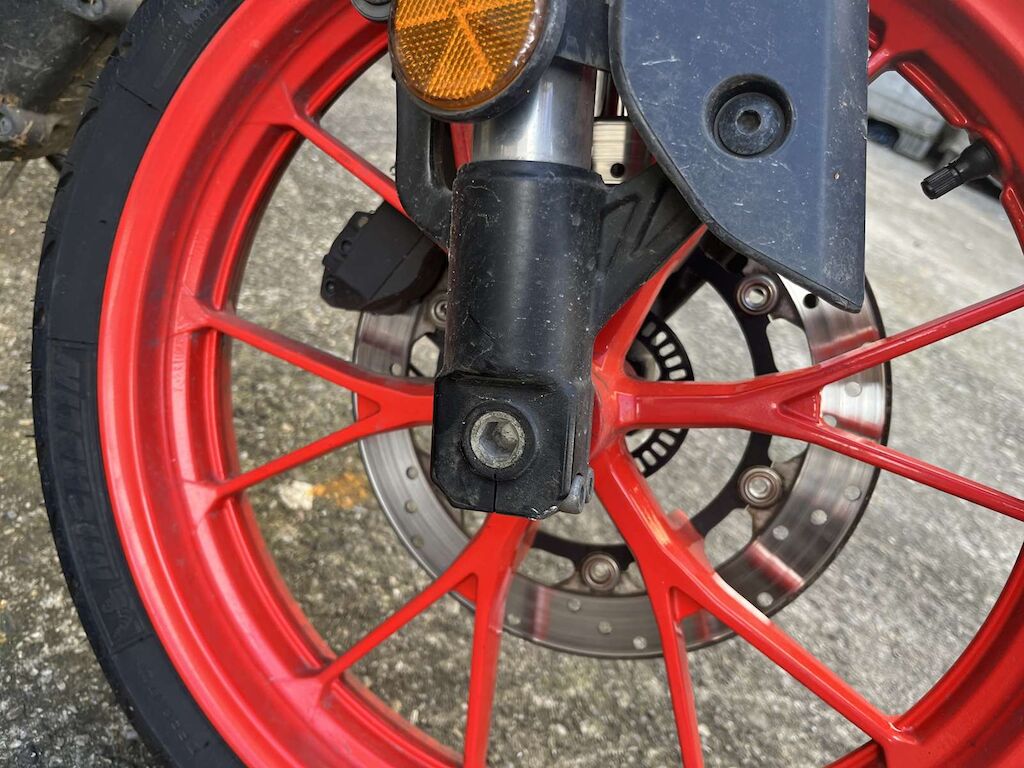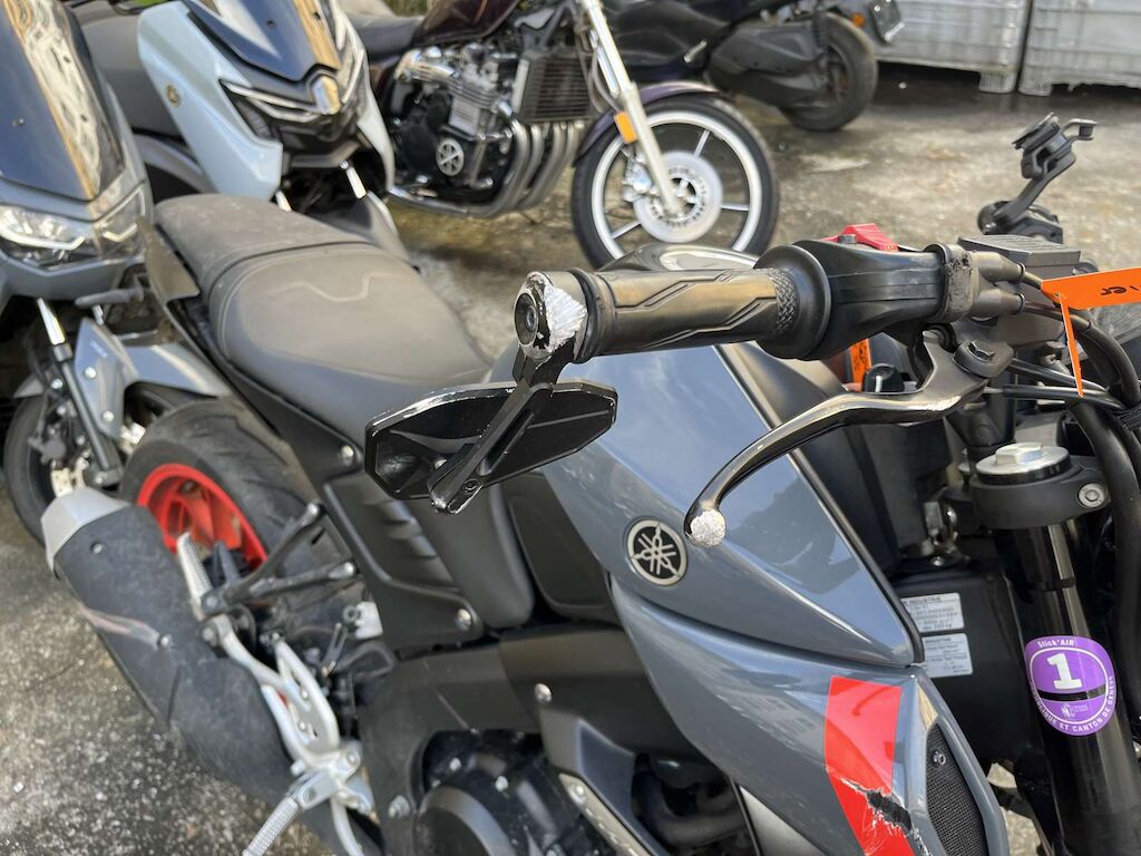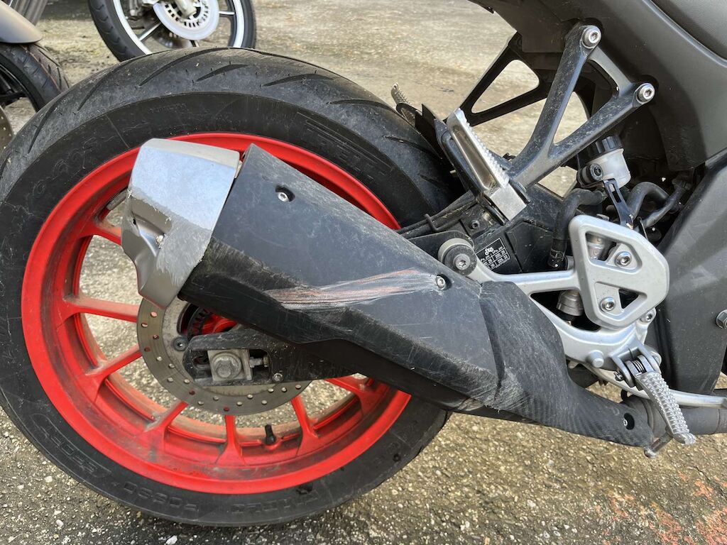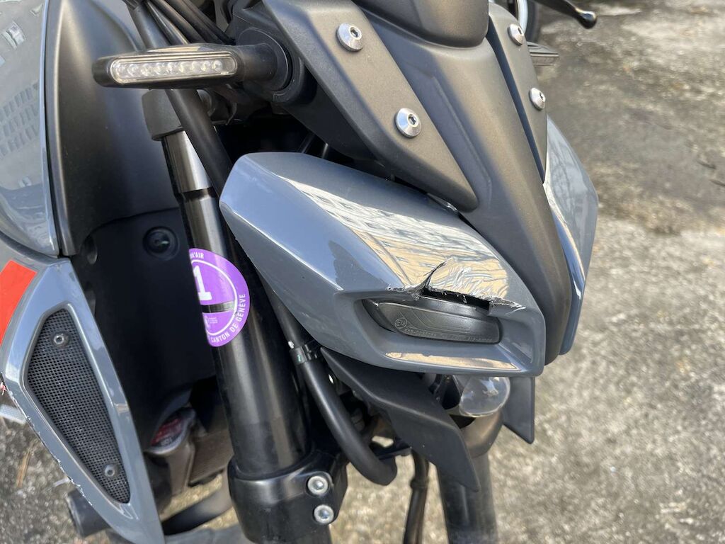 Chute côté droit: Levier de frein, câble de gaz, embout de guidon, rétroviseur droit, face avant, phare, pied de fourche, roue avant, carénage avant droit, entourage réservoir, crash pad, repose pied, levier de frein arrière, échappement, carénage arrière endommagés et râpés. Buté de cadre endommagée. Motor Getriebe Vorderachse Hinterachse Airbags ausgelöst: 0 Ja ( Abfallcode 16.01.04ak )