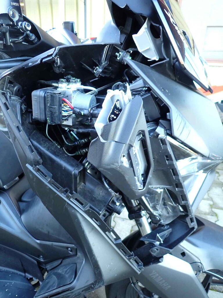 Fourche AV, phare AV, divers carénages, rétroviseur dr et levier frein dr. endommagés Motor Getriebe Vorderachse Hinterachse Airbags ausgelöst: 0 unbekannt ( Abfallcode 16.01.04ak )