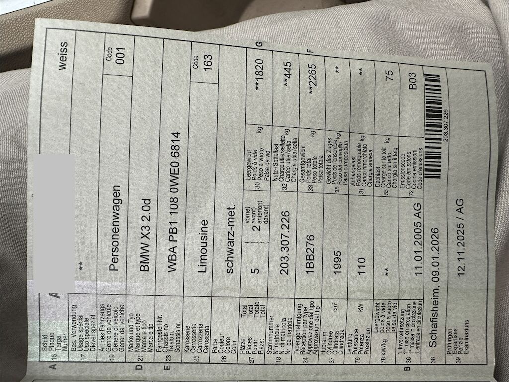 Keine technische Prüfung (Werkstatttest) vorgenommen Diverse Schäden an Karosserie/Lack. Fahrzeug ab Platz, ohne Garantie und Aufbereitung. Fahrzeug ist für Export DPF/FAP Filter nicht kontrolliert Nur 1 Schlüssel Vorhanden Motorlampe leuchte weil 1 Stecker Wackelkontakt hat Motor Getriebe Vorderachse Hinterachse Airbags ausgelöst: 0 unbekannt ( Abfallcode 16.01.04ak )