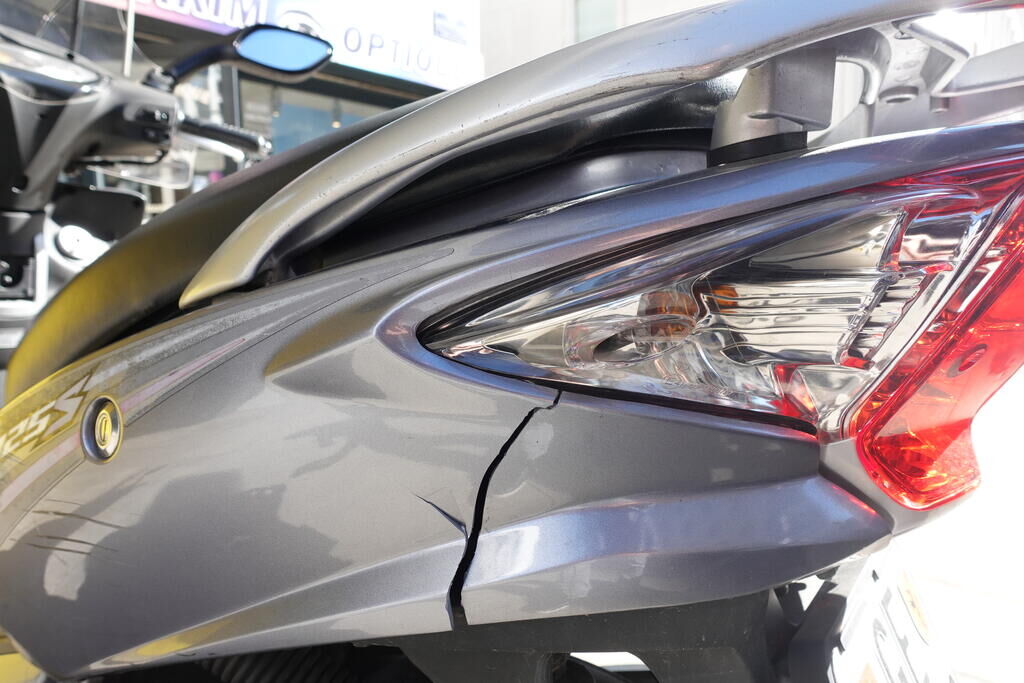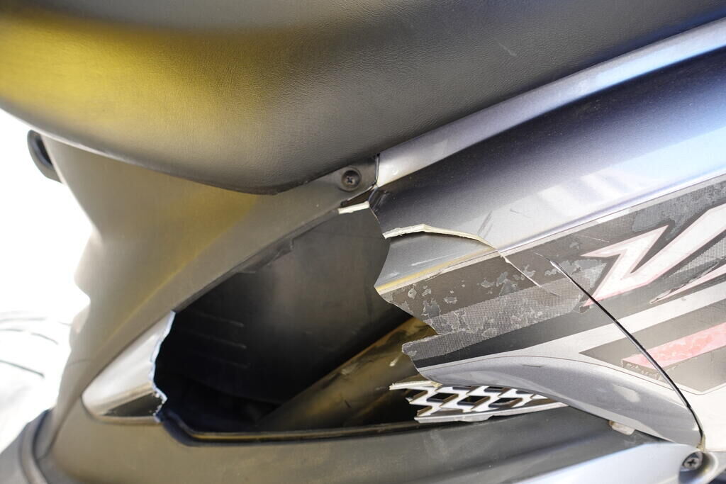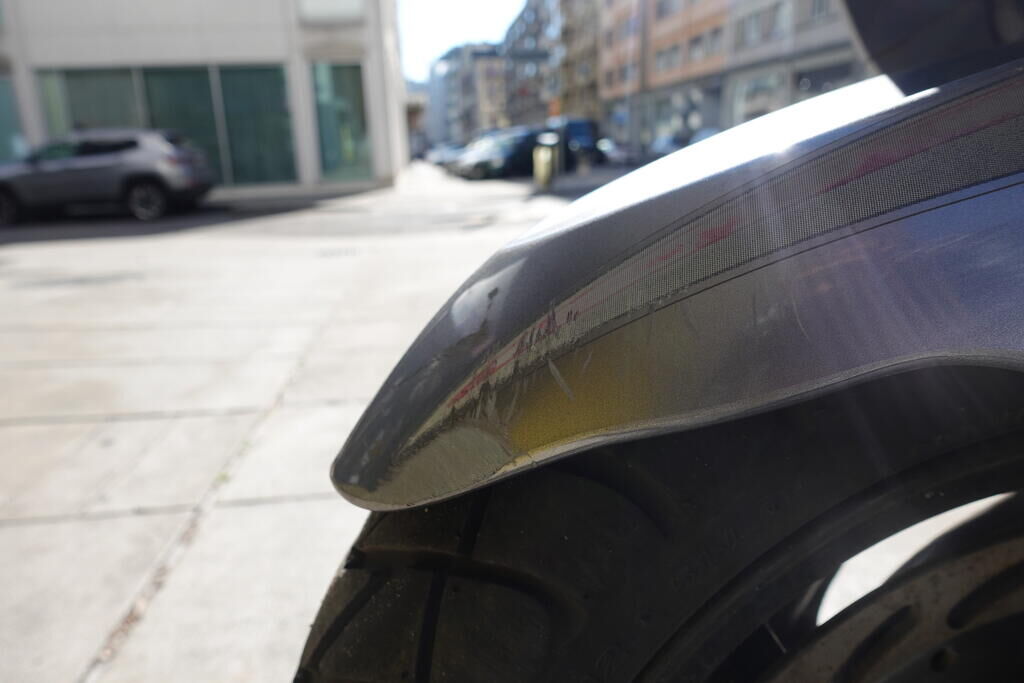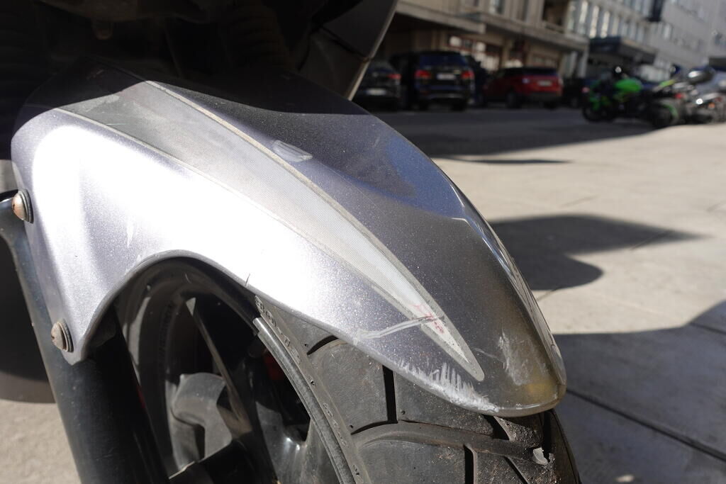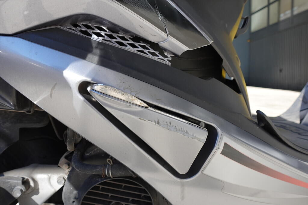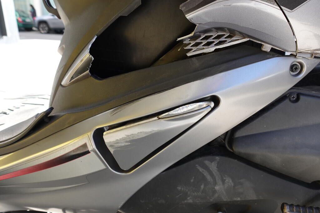 Choc arrière et chute sur flanc droit: Carénage latéral arrière droit, poignée passager, protection thermique échappement, échappement, cale-pied passager droit, rétroviseur droit, embout de guidon droit, levier frein avant, poignée accélérateur, pare-brise, carénage avant droit, bas de caisse droit, pare-boue avant; endommagés. Motor Getriebe Vorderachse Hinterachse Airbags ausgelöst: 0 unbekannt ( Abfallcode 16.01.04ak )