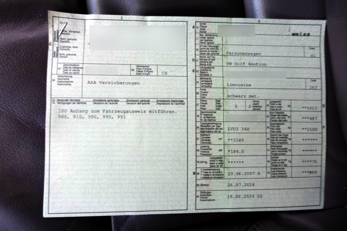 Sitze: Fahrersitz höhenverstellbar, Seitenschwellerverbreiterung in Wagen- farbe lackiert, Schalthebel aus Aluminium und Leder, Licht: Drittes Bremslicht, Durchladeklappe, Ablagefach, Aussenspiegel rechts und links beheizt und elektrisch verstellbar, asphärisch gewölbtes Spiegelglas, Zweiklanghorn, Heckscheiben-Wisch-/Waschanlage mit, Reifendruck-Kontrollanzeige, Abblendlichtausschaltverzögerung 'Follow me home', Radio/CD RCD 300 Plus mit MP3, Klima: Klimatisierungsautomatik Climatronic, Sitze: Kreuzstützen für Vordersitze verstellbar, Gurtstraffer vorne, Steckdose im Kofferraum, Innenlicht-Abschaltverzögerung, Airbag: Window-Kopfairbags, Getönte Scheiben, Airbag: Airbag Fahrer und Beifahrer, Radiovorbereitung, Antenne, Entstörung und 8 LS, Bi-Xenon Lichtanlage, Laderaumabdeckung, Leuchtweitenregulierung automatisch, Bremsassistent (BAS), Höhenverstellbare Gurten vorne, Allradantrieb permanent, Sportfahrwerk mit Tieferlegung, Elektronisches Stabilitäts-Programm ESP, Wassertemperaturanzeige, Klima: Pollenfilter (Staubfilter), Cupholder vorne und hinten, ISOFIX Kindersitzvorrichtung, Dachhimmel schwarz, Zentralverriegelung mit Fernbedienung, Digital Uhr, Türgriffe aussen in Wagenfarbe, Lackierung: Sonderlackierung, Licht: Nebelschlussleuchte, Scheinwerfer-Waschanlage, Wartungsintervall-Anzeige, Lichtwarnsummer, Getriebe: 6-Gang-Getriebe, Servolenkung geschwindigkeitsabhängig, Stossstangen und Aussenspiegel in Wagenfarbe, Airbag: Airbag Beifahrer deaktivierbar, 3 Speichen-Sportlenkrad, 3 Kopfstützen hinten, Sitze: Beifahrersitz höhenverstellbar, Mittelarmlehne hinten, Kühlergrill verchromt, Schutzleisten in Wagenfarbe, Tankdeckel-Entriegelung von innen, Leseleuchten vorne, Scheibenwischer vorne mit Intervall, Innenspiegel automatisch abblendbar, Katalysator geregelt, Elektronische Differentialsperre (EDS), Kartentaschen an den Rückenlehnen, Reifenreparatur-Set mit Kompressor, Lederhandbremshebel, Aussentemperaturanzeige, Pedalerie mit Aluminiumauflage, Polster: Stoff-Ausstattung, Multifunktionsanzeige Plus, Lenkrad: Lenkrad längs- und höhenverstellbar, 3-Punkt-Sicherheitsgurte auf allen Plätzen, Antiblockiersystem (ABS), Diebstahlwarnanlage mit Innenraum-überwachung, Leseleuchten hinten, Sportsitze vorne, Dachspoiler, Seitenairbag für Fahrer und Beifahrer, Aschenbecher und Zigarettenanzünder, Bordcomputer, Ausstiegsleuchten in den Türen, Applikationen, Beleuchtetes und abschliessbares Handschuhfach, Beide Make up-Spiegel beleuchtet, Teppichfussmatten vorne und hinten, Elektrische Fensterheber vorne + hinten, Regensensor für Scheibenwischer vorne, Sitze: Rücksitzlehne geteilt abklappbar, Drehzahlmesser, Antriebsschlupfregelung (ASR), Aktive Kopfstützen, Heckscheibenheizung, Wegfahrsperre elektronisch, Tageskilometerzähler, Leichtmetallräder (Omanyt) 7,5x18J