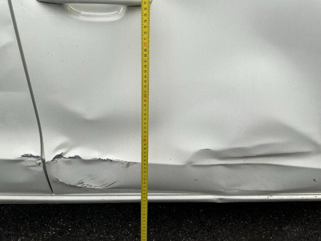 Frontflügel, Felge, Aufhängung, Lenkung, Vorder- und Hintertür sowie Unterboden beschädigt.