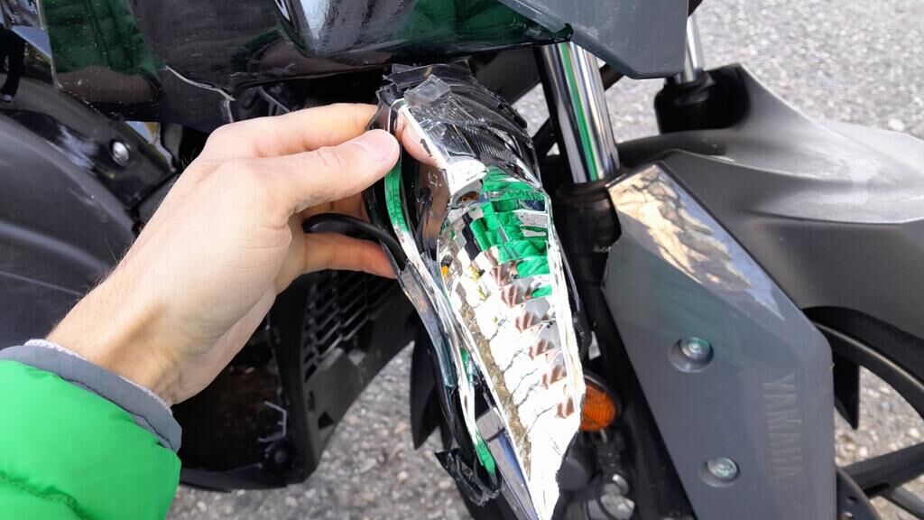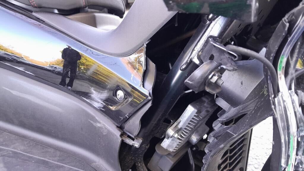 Fourches + garde-boue Face AV complète + support et phare Carénages AV + latéraux D Tablier AV Marche pieds D et bas de caisse Levier de frein D + rétroviseur Tôle par-chaleur échappement ( + autre dommage ) Carénages lat G + bas de caisse Levier de frein G + rétroviseur Béquilles Aile AR G + poignée Motor Getriebe Vorderachse Hinterachse Airbags ausgelöst: 0 unbekannt ( Abfallcode 16.01.04ak )