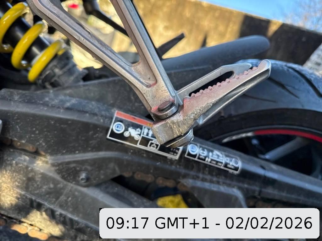 Aussenspiegel links, Front, Fussraster links, Gabelholm, Griff links, Heck, Heckverkleidung, Kupplungsgehäuse, Lenker, Motorgehäuse, Rad hinten, Rad vorne, Rücklicht, Scheinwerfer, Schutzblech vorne, Schwinge, Seite links, Tank, Verschalungen hinten, Verschalungen links, Verschalungen vorne