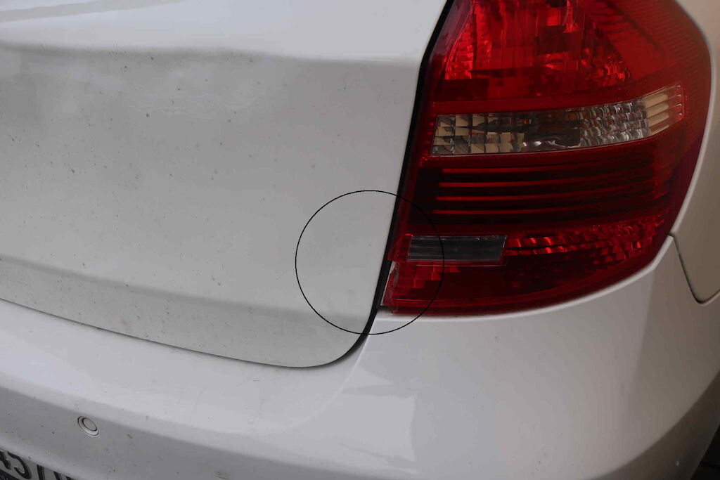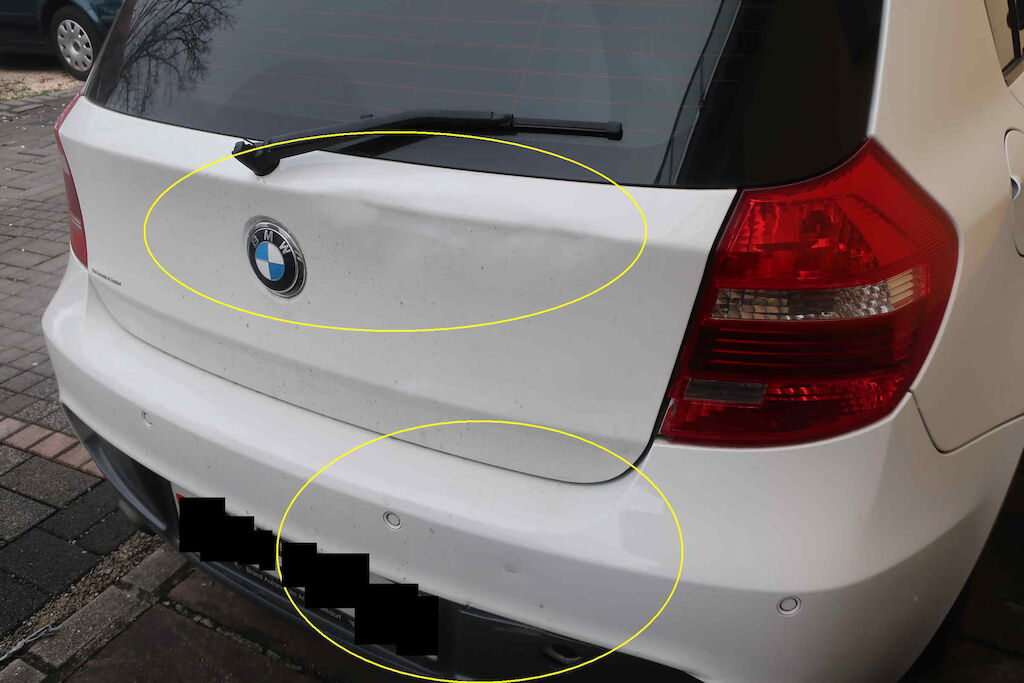 Vorschäden:Delle Heckklappe, Stossfänger mit Spoiler hinten, Heckleuchte rechts und Dachantenne, Türen links und Kniestück links