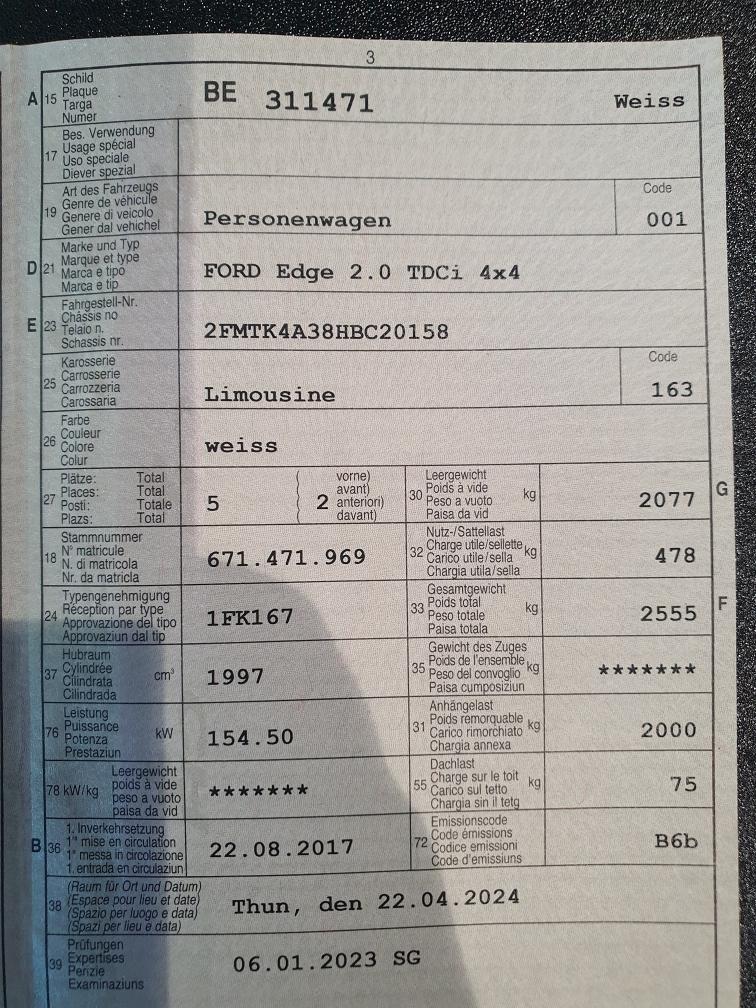 Am Ford Edge ist kein Werkstatttest gemacht worden. Das Fzg. fährt sich gut keine Lampen leuchten. Service ist fällig. Dieselpartikelfilter test wurde gemacht und ist gut. siehe Foto offizielle Messung von 25.02.2026 Bestanden. 2-3 Kratzer und Beulen siehe Foto.