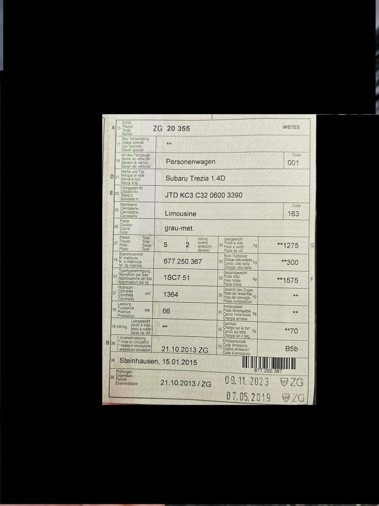 SUBARU Trezia 1.4D