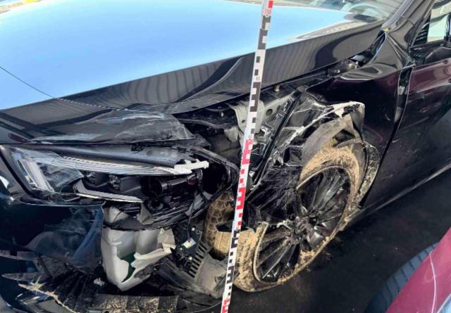 Linke Seite beschädigt. Tür vorne links ist eingedrückt.