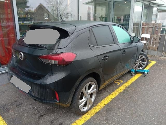 Rechte Seite beschädigt. Anstoss rechts im Bereich der A-Säule. Schweller rechts ist eingedrückt.