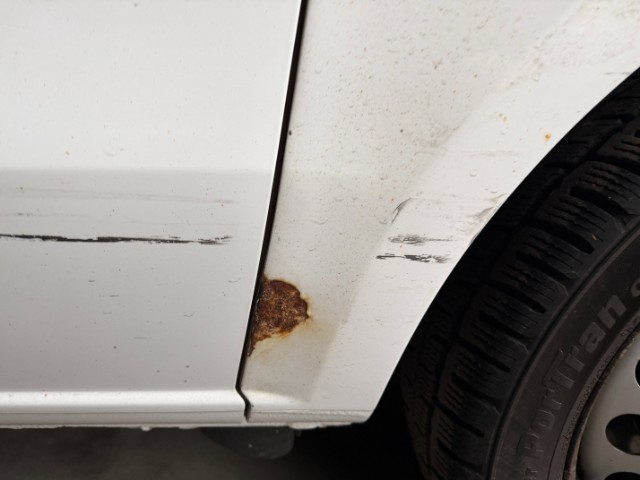 Risiko: Radhaus links und rechts. Beide Scheinwerfer beschädigt und nicht mehr vorhanden. Türe vorne rechts beschädigt. Seitenwand hinten links beschädigt und gerostet. Heckklappe links beschädigt.