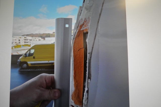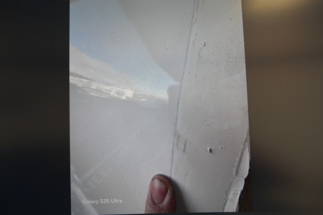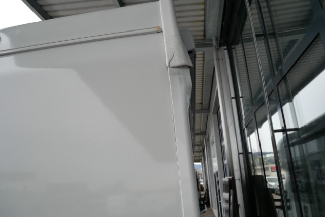 Seite rechts eingedrückt. Seite rechts hat ein Loch. Heck eingedrückt. Heck hat ein Loch.