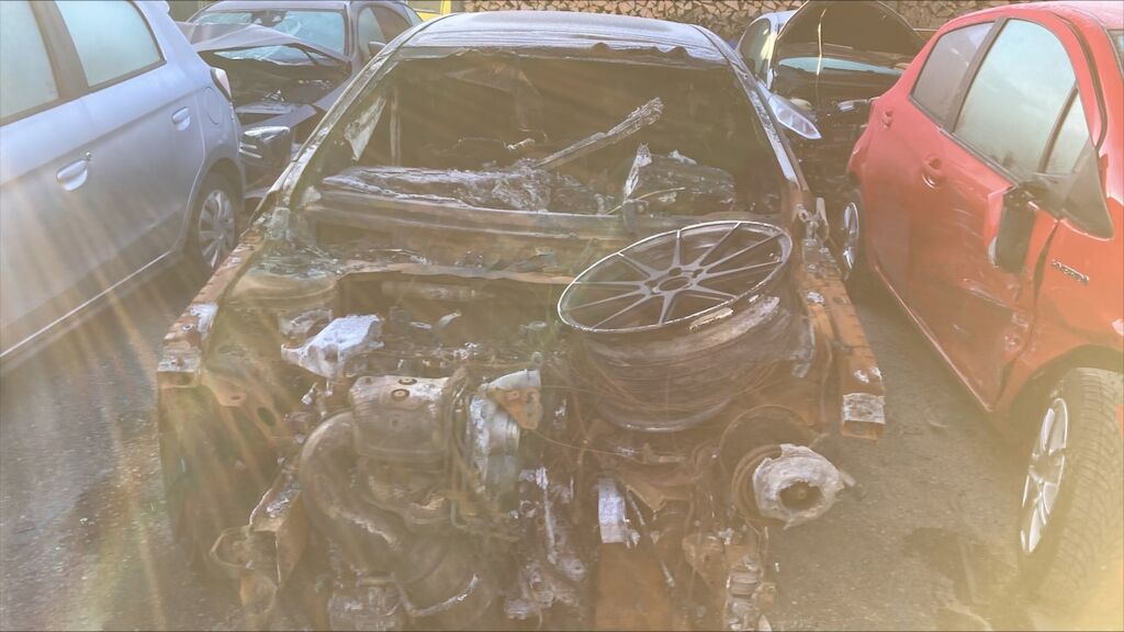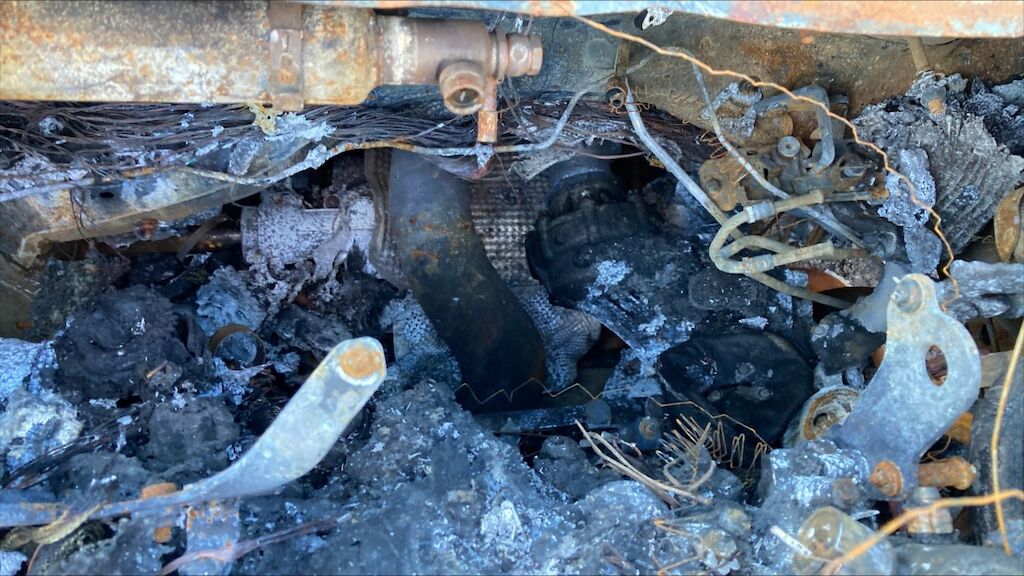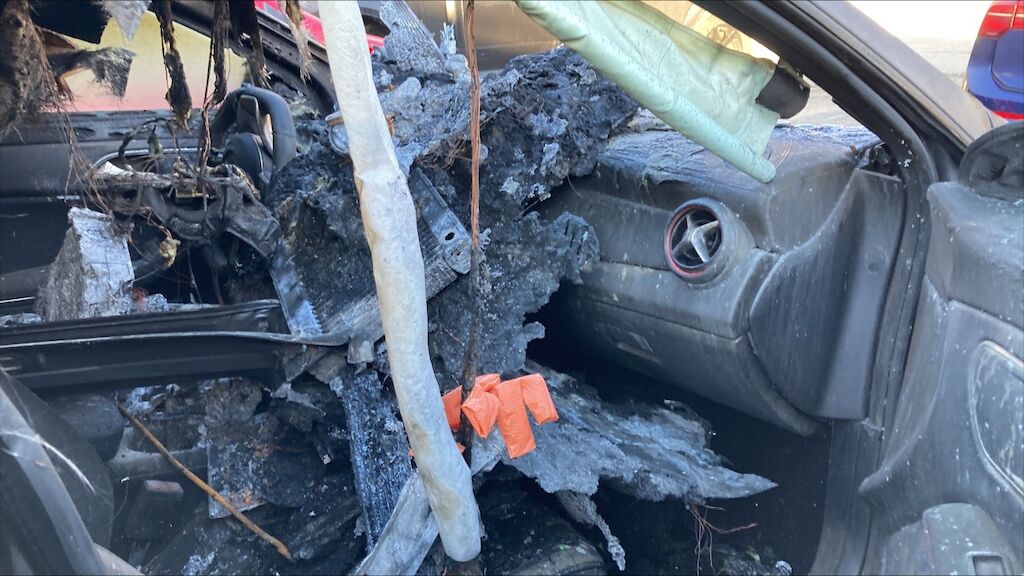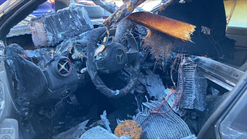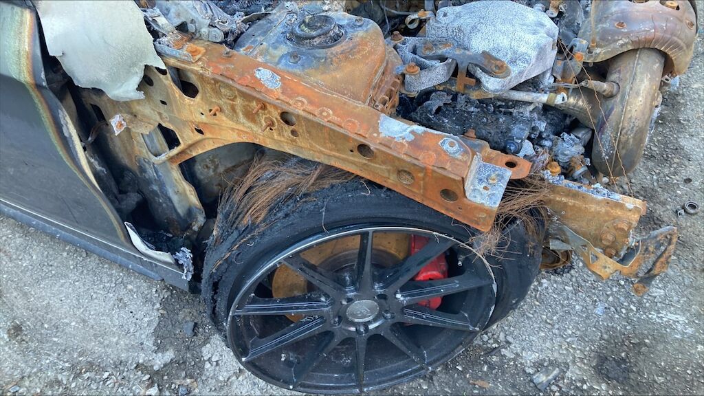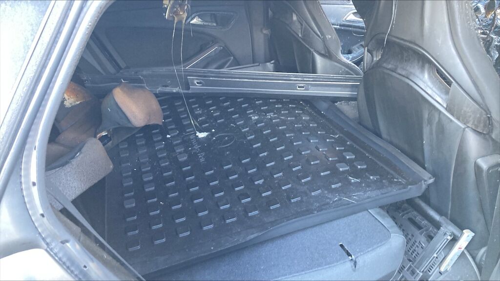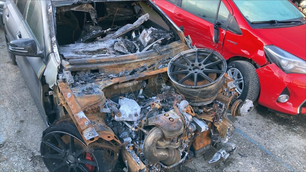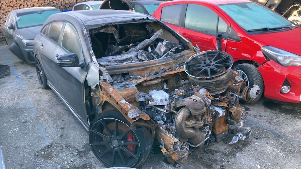 Zone avant: face avant, compartiment moteur, deux ailes, par brise, avant du toit, tableau de bord, intérieur complétement brûlés. La partie la plus chaude du sinistre se situe sur zone avant gauche du moteur, point de départ. Kilométrage pas lisible. Motor Getriebe Vorderachse Hinterachse Airbags ausgelöst: 0 Nein ( Abfallcode 16.01.04ak )