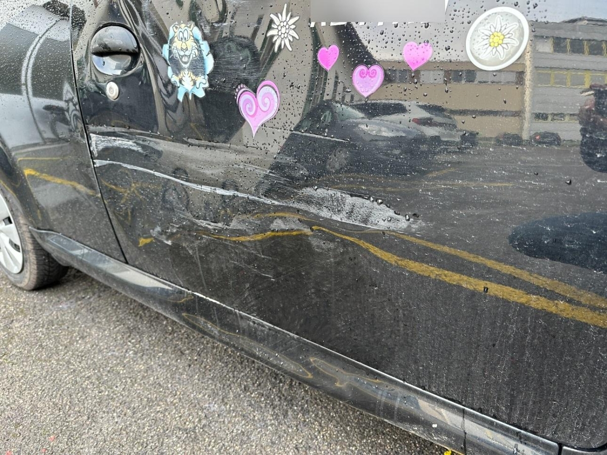Das Fahrzeug hat rundum kleine Dellen, Beulen und Lackschäden