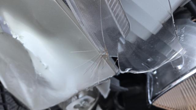 Rechte Seite beschädigt. Tür vorne rechts ist eingedrückt.