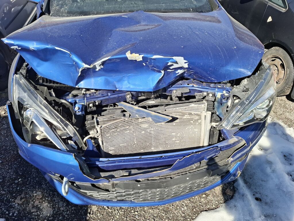 Dommage partie frontale: bloc avant fortement plié déformé embouti enfoncé disloqué endommagé, capot charnières et serrure de capot moteur aile droite tôle frontale renfort de pare chocs fortement pliés déformés emboutis enfoncés endommagés, phares gauche et droit enveloppe supports garniture et grilles de pare chocs calandre convoyeurs d'air et ventilateur de refroidissement cassés fissurés éclatés arrachés endommagés, condenseur de climatisation intercooler radiateur de refroidissement percés déformés endommagés. Motor Getriebe Vorderachse Hinterachse Airbags ausgelöst: 0 Nein ( Abfallcode 16.01.04ak )