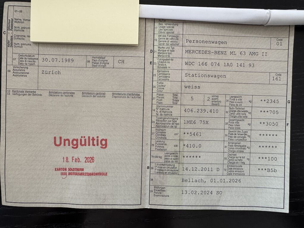 Optisch ist das Fahrzeug von draussen so wie von innen sehr gepflegt. Fahrzeug läuft einwandfrei. Motor und Getriebe i.O. Am Fahrzeug wurde kein Werkstatttest gemacht (Für sichtbare oder nicht sichtbare Mängel wird nicht gehaftet). Wir testen & kontrollieren nicht alle Funktionen vom Fahrzeug. Das Risiko liegt somit vollumfänglich beim Käufer. Nachdem der Höchstbietende den Zuschlag erhalten hat, gibt es keine Nachverhandlung, auch wenn nicht deklarierte Mängel zum Vorschein kommen sollten. Ab Platz ohne Garantie, Wandelung und Minderung werden wegbedungen. Abholung nach Zuschlag innert 4 Tagen. Motor Getriebe Vorderachse Hinterachse Airbags ausgelöst: 0 unbekannt ( Abfallcode 16.01.04ak )