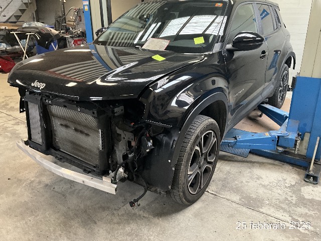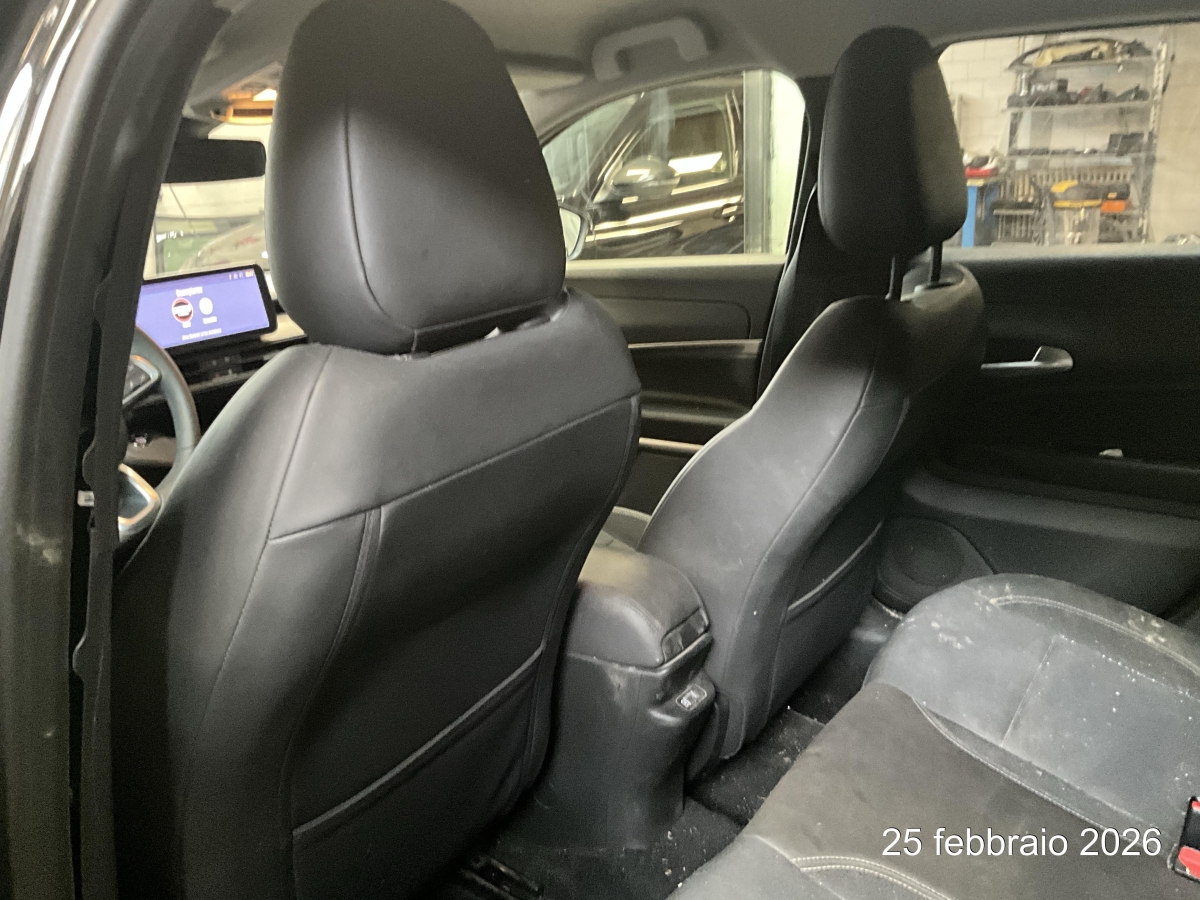 Airbag: Airbag conducente e passeggero, Airbag: Airbag passeggero desattivabile, Alzacristalli con Funzione One Touch, Appoggiateste posteriore regolabili in altezza, Assist: Adaptive Cruise Control, Assist: Assistenza alla frenata di emergenza con rilevamento pedoni, Assist: Controllo discesa Hill Descent Control, Assist: ParkSense Sistema di ausilio al parcheggio: sensori di parcheggio posteriori, Assist: ParkView camera per retromarcia con griglia dinamica, Assist: Riconoscimento dei segnali stradali, Attacco Isofix sul sedile del passeggero, Bracciolo centrale anteriore con vano portaoggetti, Calotte specchietti nere, Cambio: Automatico (una velocita), Caricatore di bordo da 11 kW - trifase, Cavo di ricarica Mode 3 per wallbox o stazione di ricarica pubblica, Chiusura centralizzata con telecomando, Cinture di sicurezza a 3 punti a tutti i posti, Clima: Aria condizionata automatica, Computer di bordo, Decor: Interni e plancia Inserti plancia silver, Freno di stazionamento elettromeccanico, Garanzia: 3 anni o 100'000 km (da 1a messa in circ.), Garanzia: La batteria è garantita per 7 anni o 160 000 km, Immobilizzatore, Keyless Enter-N-Go (apertura / chiusura senza chiave della vettura), Luce: Fari con riflettori a LED e luci diurne, Luce: Luci posteriori alogene, Luce: Retronebbia a LED, Luce: Terza luce di stop, Lunotto posteriore riscaldabile, Manico del passeggero, Maniglie esterne in colore della carrozzeria, Media: Apple Carplay &, Media: DAB+, Media: Presa USB-C con funzione di ricarica per i passeggeri posteriori, Media: Quadro strumenti Display digitale da 10,25 pollici, Media: Sistema audio con 6 altoparlanti, Media: Tasca per smartphone con ricarica wireless, Media: Touchscreen Navi Uconnect Smarttouch 10", Media: Uconnect Services, Pacchetto: Pacchetto di sicurezza, Pacchetto: Pack Winter, Parabrezza riscaldato, Piano di carico bagagliaio regolabile in altezza, Pompa di calore, Portellone elettrico con apertura a mani libere, Programma elettronico della stabilità (ESP), Ruote: Avvertimento di perdita di pressione dei pneumatici, Ruote: Cerchi in lega da 18", Ruote: Kit di riparazione pneumatici Fix &, Sedili: Schienale sedile posteriore ribaltabile con rapporto 60/40, Sedili: Sedile conducente regolabile manualmente in 6 direzioni, Sedili: Sedile passeggero regolabile manualmente in 4 direzioni, Sedili: Sedili anteriori riscaldabili, Selettore di guida elettrica, Servosterzo, Sistema antibloccaggio delle ruote (ABS), Sistema di assistenza alla guida fuoristrada, Specchi retrovisori esterni ripiegabili elettricamente, Tappetini davanti e dietro, Tappezzeria: Tessuto nero con cuciture decorative grigie, Tasche nello schienale dei sedili anteriori, Tergicristallo con sensori di pioggia, Tergicristallo posteriore con lavavetro, Verniciatura: Vernice Pastello Ruby Red, Volante: Volante in pelle techno, eCall - sistema di chiamata di emergenza