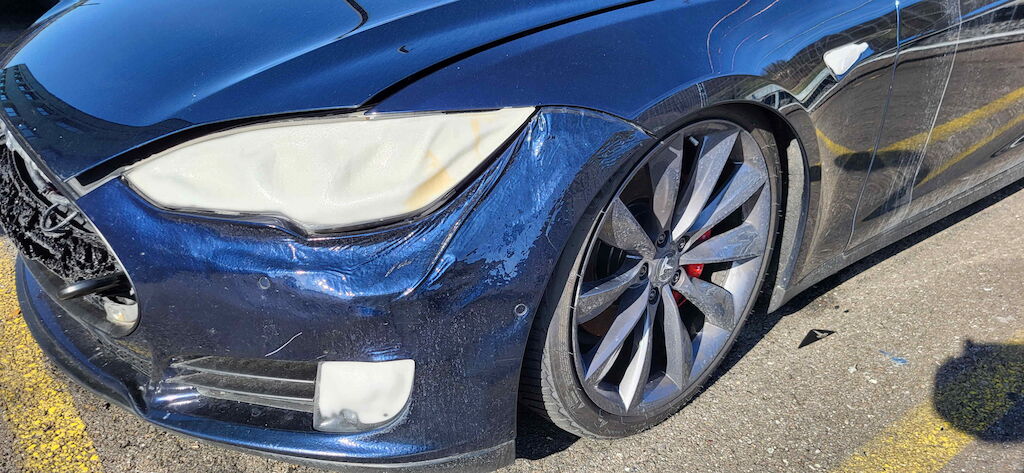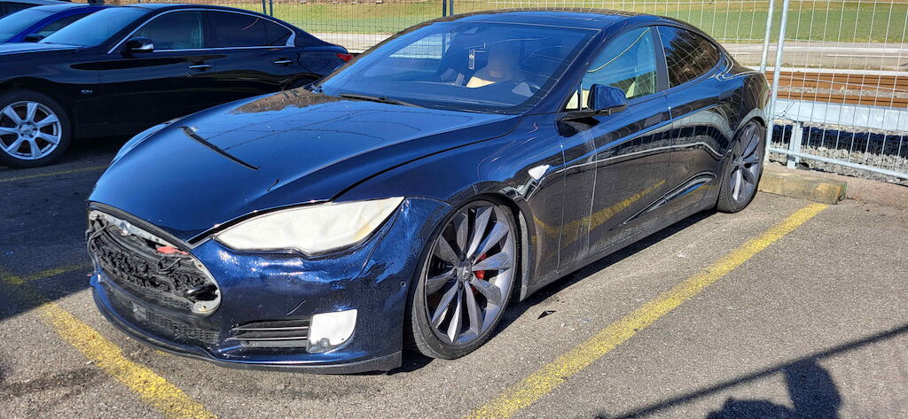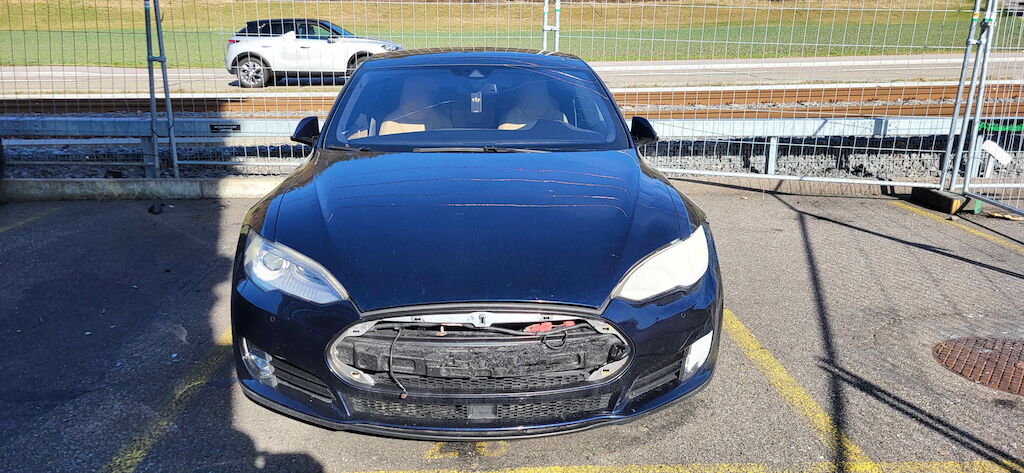 Kunstoffanbauteile Front und links versengt, Luftfahrwerk vorne beschädigt, Frontscheibe gerissen. Hochvoltbatterie beschädigt (Vorschaden). Motor Getriebe Vorderachse Hinterachse Airbags ausgelöst: 0 unbekannt ( Abfallcode 16.01.04ak )
