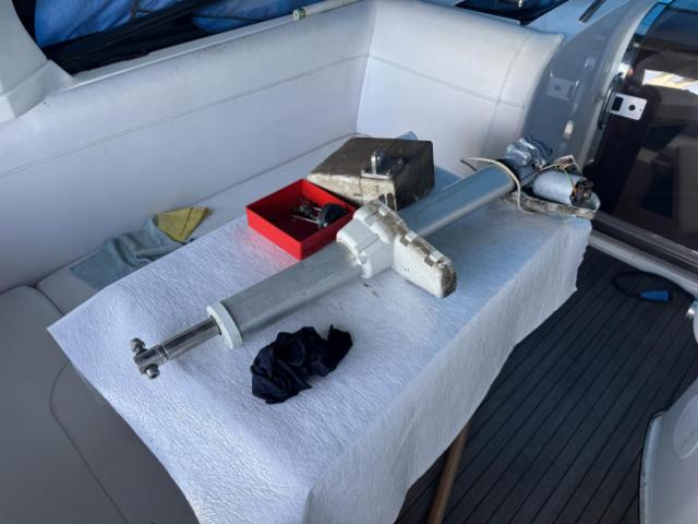 Wasser stand bis etwa unterkannte Motor - Wassereintritt durch beschädigte Manschette am Z-Antrieb - Manschette wurde durch Bootswerft erneuert - Boot liegt wieder im Wasser - Motor läuft gemäss Werft - Boot stand teilweise unter Wasser - weitere Beschädigungen möglich, Risiko - Transport vom Boot zu lasten vom Aufkäufer