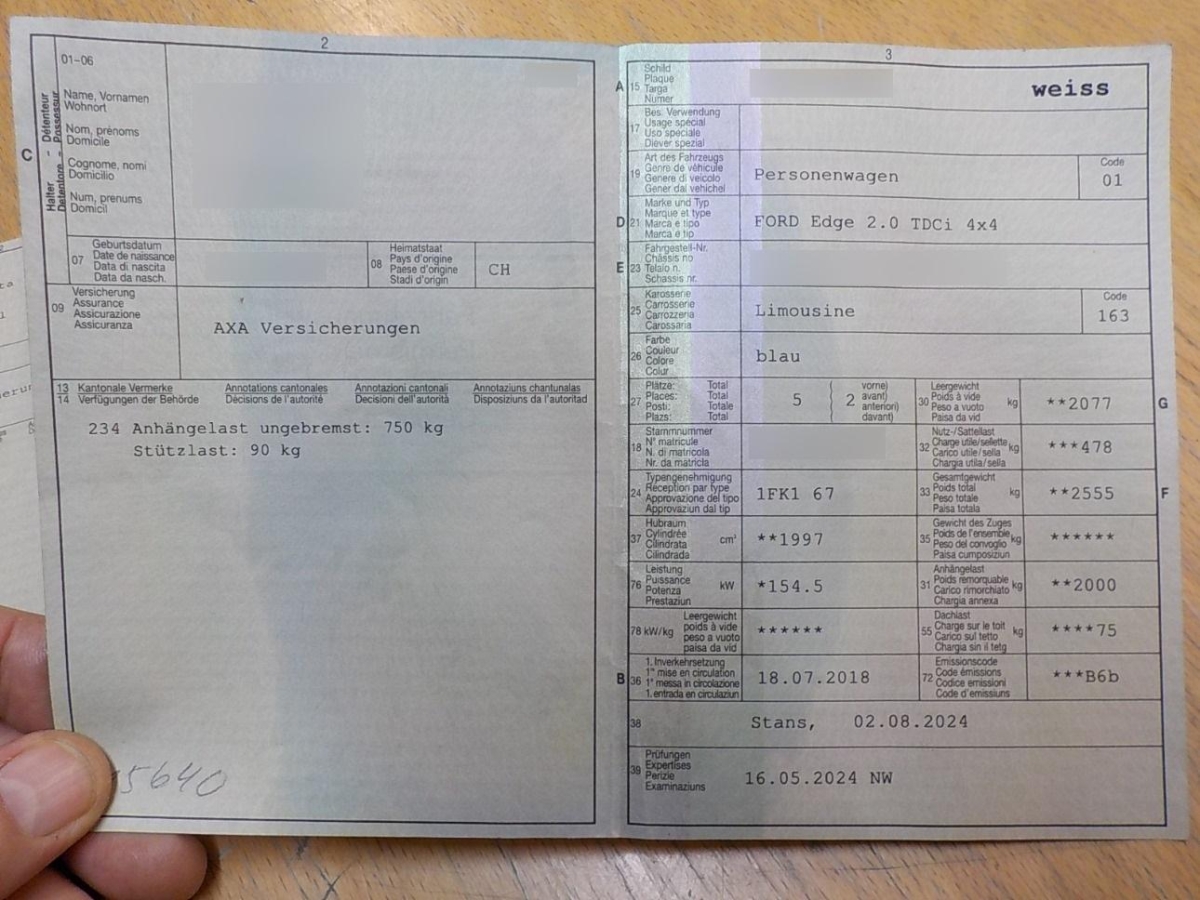 Assist: Tempomat mit Geschwindigkeitsbegrenzer, Gurtstraffer vorne, Raucherpaket, Reifendruck-Kontrollanzeige, Klima: 2-Zonen-Klimaautomatik, Umgebungsausleuchtung (Follow me home), Heckspoiler in Wagenfarbe, Assist: Verkehrsschild-Erkennungssystem, ABS und TCS, Klima: Aktivkohlefilter, Start-/Stop-Knopf, Assist: Müdigkeitserkennung, Airbag: Window-Kopfairbags, Wegfahrsperre elektronisch, Mittelkonsole mit Mittelarmlehne und Becherhalter, Airbag: Seitenairbag für Fahrer und Beifahrer, Partikelfilter und Oxydationskatalysator, Brillenfach, Sitze: Kopfstützen vorne höhenverstellbar, Spurassistent, Airbag: Knie-Airbag für Fahrer, Torque Vectoring, LED Innenlichtpaket, Frontscheibe mit Dämmglas, Media: SYNC 3, Lenkrad: Lenkrad längs- und höhenverstellbar, 3-Punkt-Sicherheitsgurte auf allen Plätzen, Befestigungsösen im Laderaum, Licht: Tagfahrlicht, Lenkrad: Lenkrad beheizbar, Kopfstützen hinten höhenverstellbar, Spurverlassenswarnung, Sequentielles 6-Gang-Getriebe mit Automatikfunktion, Verkehrszeichenerkennung, Beleuchtetes Handschuhfach, Gepäcknetz(e), Allradantrieb permanent, Scheibenwischer vorne mit Intervall, Airbag: Fahrer und Beifahrer, Sitze: Vordersitze heizbar, Einstiegsschienen vorne beleuchtet, FordPower KeyFree Startfunktion, Licht: Nebelschlussleuchte, Stossstangen, Aussenspiegel und Türgriff in Wagenfarbe, Aussenspiegel rechts und links beheizbar und elektrisch verstellbar, Start/Stop-Funktion, Licht: Nebelscheinwerfer mit Abbiegelicht, Warnblinkautomatik bei Vollbremsung, Klima: Zuheizer, MyKey, Assist: Bremsassistent (BAS), Assist: Auffahrwarnung (Pre-Collision Assist) Bremsassistent, Fussgängererkennung, warnung optisch und akustisch, Einstellbare Lendenwirbelstütze für den Fahrersitz, Elektrische Heckklappe, Servolenkung, Frontscheibe und Scheibenwaschdüsen beheizbar, Assist: Spurhalteassistent, Beide Make up-Spiegel beleuchtet, Laderaumabdeckung, Pedalerie mit Aluminiumauflage, Aussentemperaturanzeige, Assist: Park Distance Control vorne und hinten, Steckdose im Fond, Elektrische Fensterheber vorne + hinten, Media: Rückfahrkamera, Airbag: Beifahrer deaktivierbar, Seitenschweller und Stossfänger in Wagenfarbe, Licht-, Regensensor, Fernlichtassistent, Zentrale Doppelverriegelung mit Fernbe- dienung und Globalschliessung, Licht: Drittes Bremslicht, Active City Stop, Navigationssystem Sony Premium mit DAB+ Farbdisplay mit Touchscreen,Bordcomputer Premium,Radio/CD/MP3SD,2xUSB,AUX,SYNC, Bluetooth freispr.,Notrufas.,Navi,12LS, Sitze: Rücksitzlehne geteilt abklappbar, Lenkrad und Schalthebelgriff in Leder, Klima: Pollenfilter (Staubfilter), Abgedunkeltes Scheibenglas (ab B-Säule), Licht: Halogenscheinwerfer, Ambientebeleuchtung, Auspuffanlage mit 2 Endrohren, Dachreling in Aluminium, Kühlergrilleinfassungen, Leichtmetallfelgen 20J mit Pneu, Lenkrad: Multifunktionslenkrad, Räder: Notrad, Sitze in Mikrofaser/Teilleder inkl. Vordersizte elektrisch verstelbar, Fahrersitz mit Memory, Türverkleidungen in Leder bezogen, Sportsitze, Sitze: Sportsitze vorne, Teppichfussmatten vorne und hinten