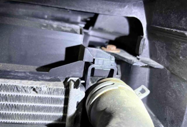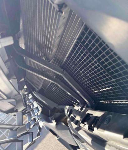 Risiko Motor. Motoranbauteile beschädigt. Kühler ist eingedrückt. Alle Kühler vorne sind eingedrückt. Motorstörung: Warnleuchte aktiv