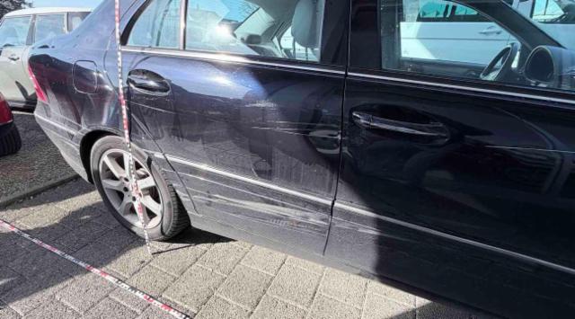 Rechte Seite beschädigt. Tür vorne rechts ist eingedrückt. Tür hinten rechts ist eingedrückt.
