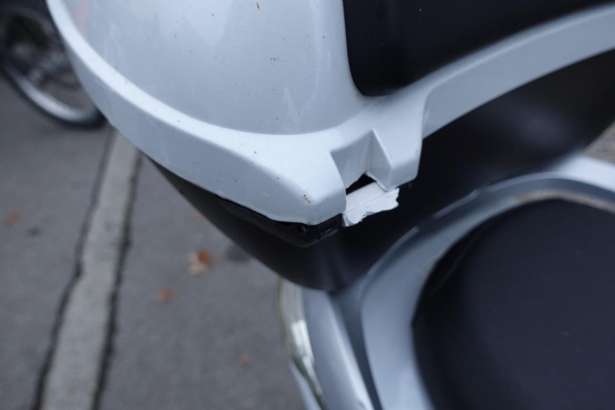 Auspufftopf, Aussenspiegel rechts, Front, Griff rechts, Lenker, Topcase, Verschalungen rechts, Verschalungen vorne