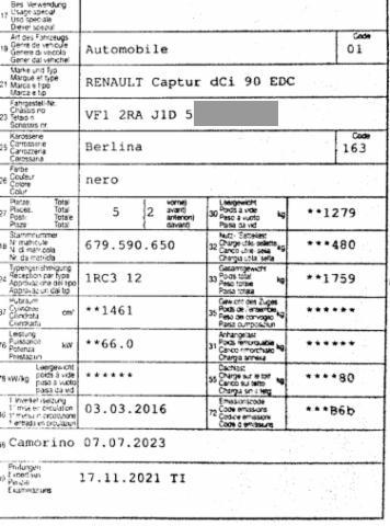 Airbag Fahrer und Beifahrerseite Elektrische Fensterheber vorne Aussenspiegel elektrisch verstellbar und heizbar Nebelscheinwerfer Lederlenkrad Lenkrad verstellbar Elektrische Fensterheber hinten ABS und EBV Elektr. Bremskraftverteilung Reifendruck-Kontrollsystem RDK Deaktivierung Beifahrerairbag Pack Colour Isofix-Kindersitzbefestigung Not-Bremsassistent mit Aktivierung der Warnblinkanlage Seitenairbags vorne ESP/ ASR/ CSV Tempomat mit Geschwindigkeitsbegrenzer Dunkle Verglasung hinten Dieselpartikelfilter Elektrische variable Servolenkung Keyless-Drive Hands-free Höhenverstellbarer Fahrersitz HSA Berganfahrassistent Rücksitzlehne geteilt 1/3 oder 2/3 / umklappbar Klimaanlage automatisch inkl. Pollenfilter Licht- und Regensensor Nebelscheinwerfer mit Corner Funktion Reifenreparatur-Kit Stop + Start System LED Tagfahrlicht Leichtmetallfelgen 17" schwarz Dach in Kontrastfarbe Keine Gewähr auf die Angaben der Serienausstattungen Renault Media-Nav Sitzhüllen abnehmbar Pack Clim