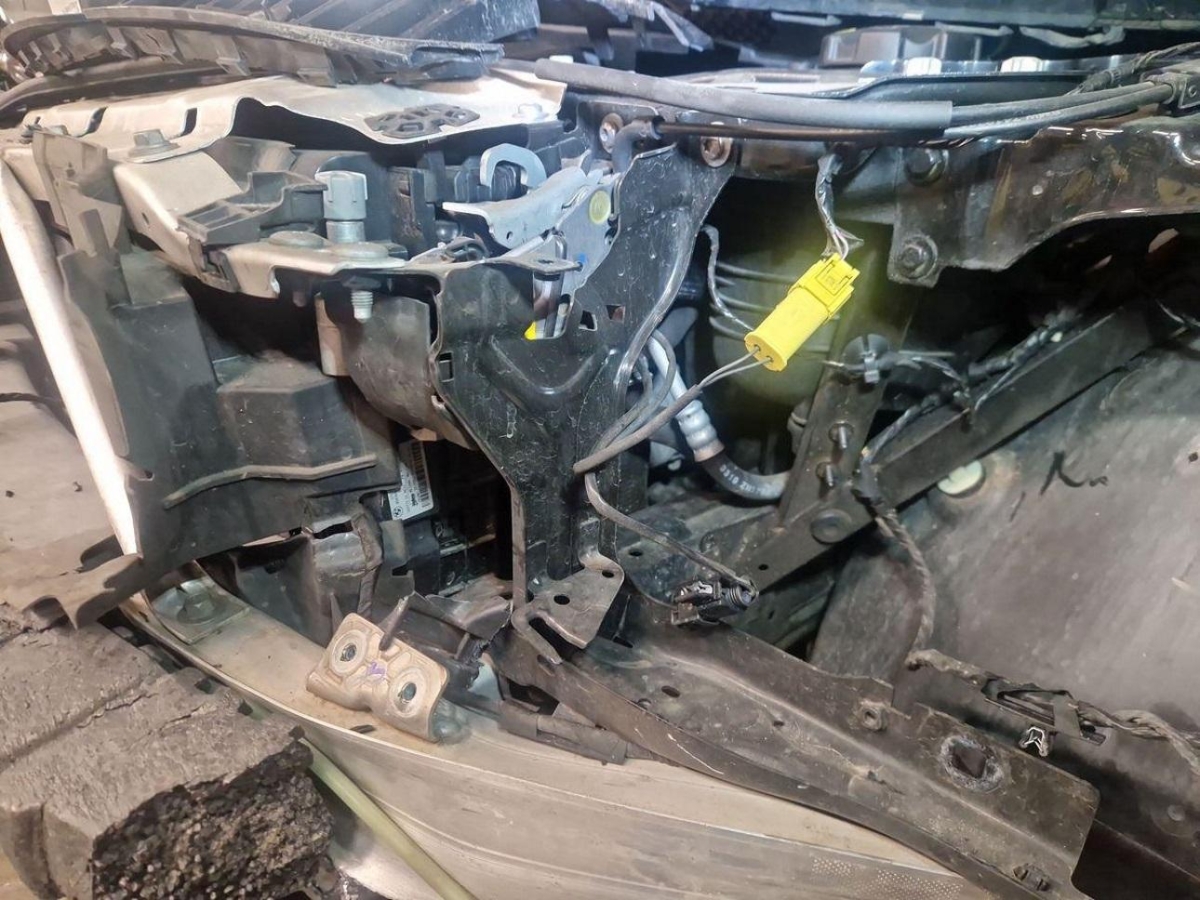 Airbag ausgelöst, Armaturenbrett, Front, Front rechts, Frontscheibe, Klimakühler, Kotflügel links, Kühler, Ladeluftkühler, Motorhaube, Scheinwerfer links, Stosstange vorne