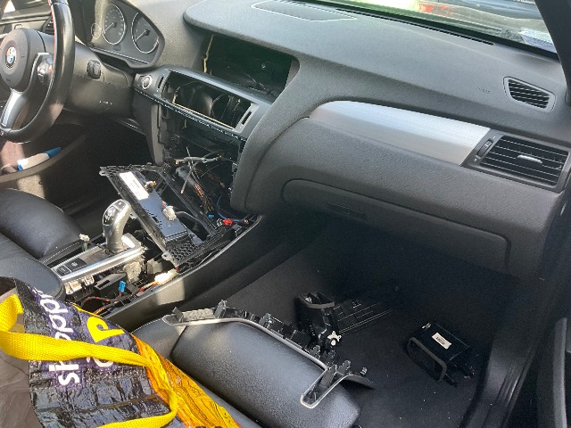 Interieur et latéral gauche : Porte avant gauche - Montant de porte avant gauche - Divers cables coupes - Ordinateur de bord - Tableau de bord - Radio - Liste non exhaustive / Dommages préexistants: traces d'utilisation