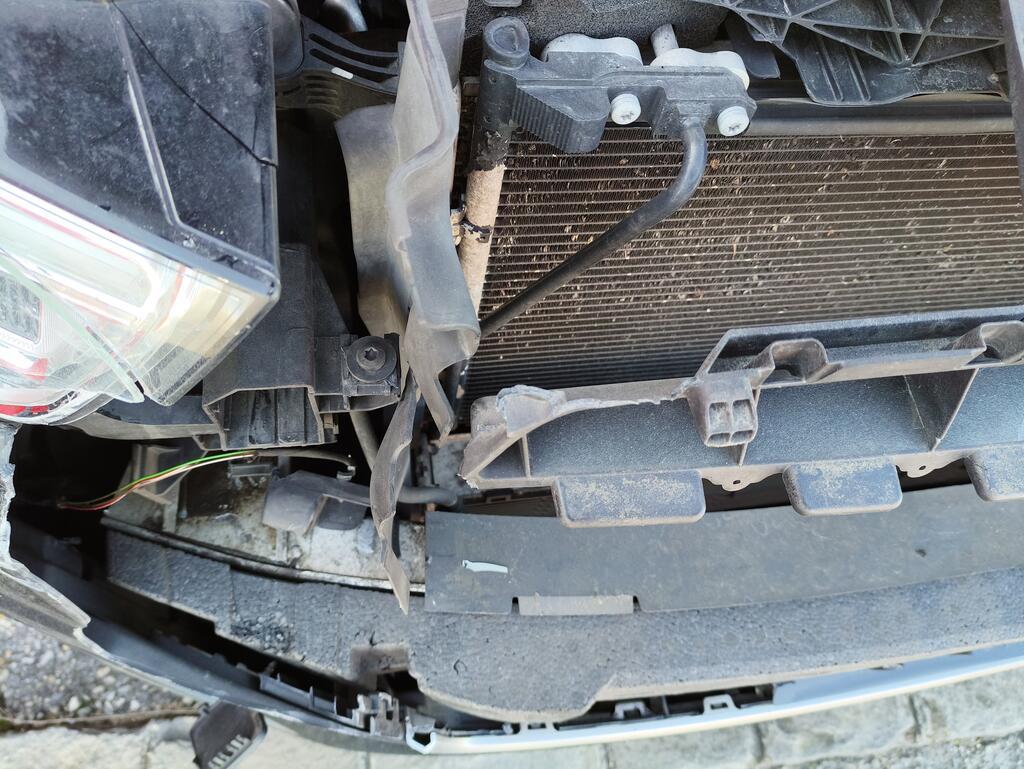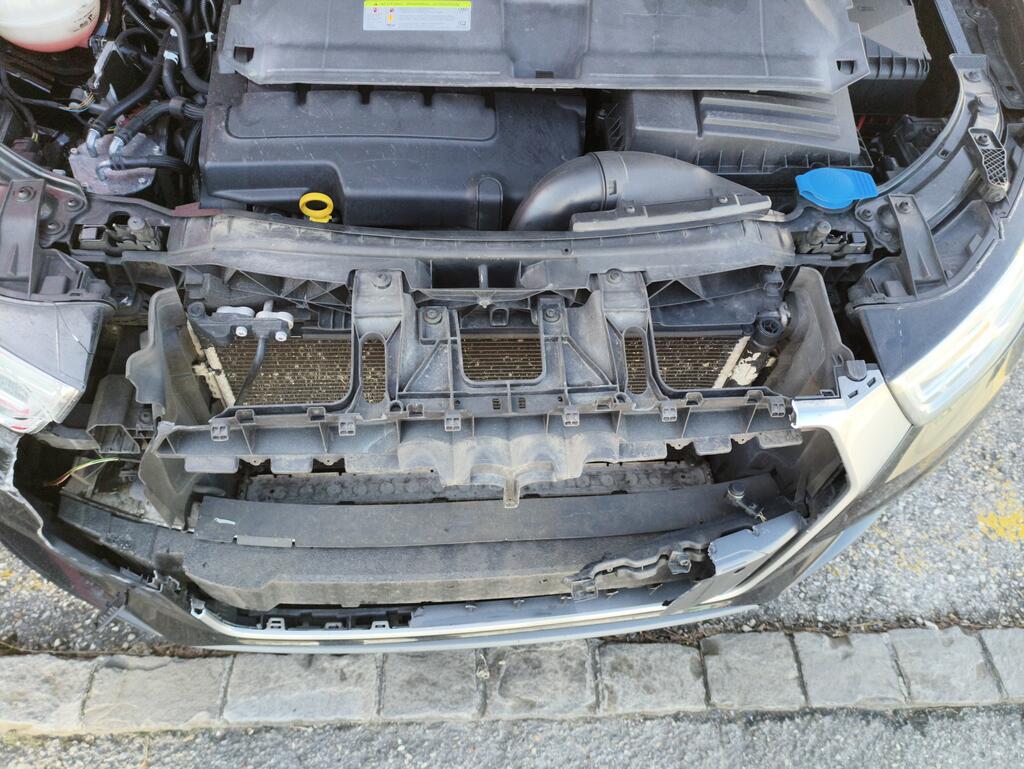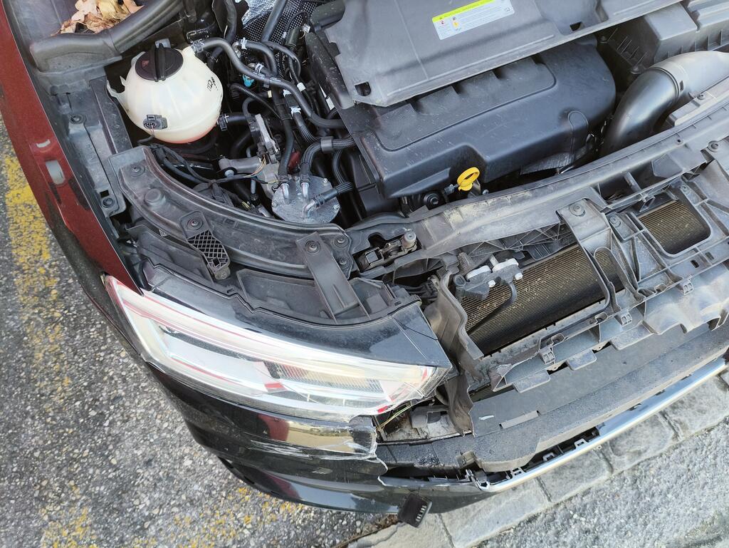 Choc avant gauche Capot moteur enfoncé et refoulé. Phare droit, pare-chocs avant, calandre et capteur PDC avant enfoncés et cassés. Le véhicule ne peut pas rouler. Côté gauche endommagé. Torche électrique brûlée, endommagée et coupée. Risques sur les phares.