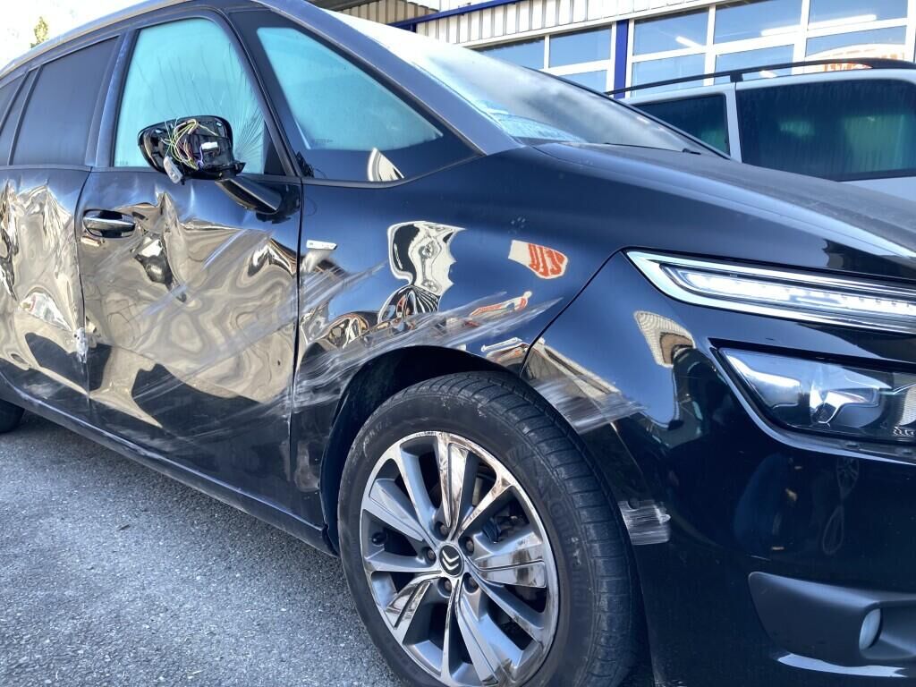 Tout le flanc droit très fortement endommagé ( Enveloppe de pare-chocs, aile avant, 2 portes, rétroviseur et vitrage de porte avant, passage d'aile arrière droit, bas de caisse et jante alu avant droit) Motor Getriebe Vorderachse Hinterachse Airbags ausgelöst: 0 Ja ( Abfallcode 16.01.04ak )