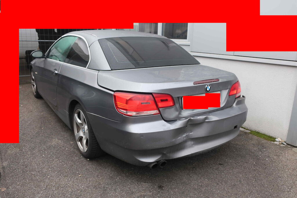 massiver Anprall Heck: Heckdeckel, Stossstange, Heckblech etc. Motor Getriebe Vorderachse Hinterachse Airbags ausgelöst: 0 unbekannt ( Abfallcode 16.01.04ak )