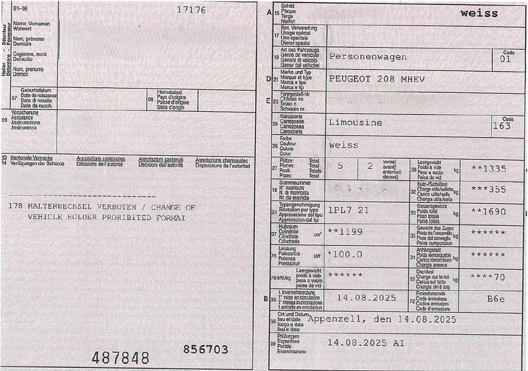 Achtung:Bei dieser Auktion handelt es sich vorerst um eine Restwertermittlung, bei der ein definitiver Verkauf bzw. die Abgabe des Objektes an den Höchstbietenden von einem allfälligen Übernahmeangebot des Fahrzeughalters abhängt.Wichtig:Bei dieser Auktion handelt es sich um einen Konsignationsverkauf. Die Rechnungsstellung erfolgt wie folgt: Verkaufspreis + allfällige Bearbeitungsgebühr + Mehrwertsteuer (zuzüglich MwSt). Der Betrag muss vor der Abholung überwiesen worden sein.Das Fahrzeug steht beim nachfolgend aufgeführten Standortbetrieb und muss vor Gebotsabgabe besichtigt werden.Bitte melden Sie Ihren Besuch beim Standortbetrieb telefonisch an:AXA Mobility Services AGHolzliwisenstrasse 118604 Volketswil/ZH058 215 88 08ACHTUNG: Diese Restwertermittlung wird im Auftrag derAXA Mobility Services AG (AMS)durchgeführt!Es gelten folgende besondere Bestimmungen:Nach Ablauf der Restwertermittlung wird das Höchstgebot an dieAXA Mobility Services AG (AMS)übermittelt.Der Höchstbietende bleibt nach Ablauf der Gebotsfrist während vier Wochen (30 Tage) an sein Gebot gebunden.Der Höchstbietende wird durch dieAXA Mobility Services AG (AMS)über das weitere Vorgehen informiert.Bitte wenden Sie sich bei Fragen direkt an:Die (vom Fahrzeugexperten) ermittelten Reparaturkosten beziehen sich auf das versicherte Ereignis. Allfällige zusätzliche, nicht versicherte Schäden/Vorschäden sind in den Reparaturkosten nicht enthalten. Die deklarierten Ausstattungsmerkmale können von der effektiven Ausstattung abweichen.Achtung:Bei einem Hochvoltsystem – Spannungsfreiheit prüfen. Sicherheitshinweise und Betriebsanleitungen des Herstellers konsultieren und befolgen.