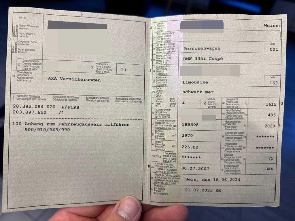 Sitze: Sportsitze vorne, Abschliessbare Radschrauben, Heckscheibenheizung, Scheibenwischer vorne mit Intervall, Stoff-Ausstattung, Scheibenwaschdüsen beheizt, Leichtmetallfelgen V-Speiche 188 17J mit Pneu, Nichtraucherausführung, Fussraumbeleuchtung vorne, Vordersitze höhenverstellbar, Kopfstützen hinten, Bi-Xenon Lichtanlage, Gurtstraffer vorne, Tagfahrlicht, Zweiklanghorn, Drittes Bremslicht, Weisse Blinkleuchten, Bavaria Business CD mit Antenne, Ent- störung und LS, Einstiegsschienen, Rücksitzlehne geteilt abklappbar, Beleuchtetes und abschliessbares Handschuhfach, Antennen-Diversity, Airbag: Airbag Fahrer und Beifahrer, Abblendlichtausschaltverzögerung 'Follow me home', ISOFIX Kindersitzvorrichtung, Licht: Nebelschlussleuchte, Pollenfilter (Staubfilter), Reifendruckverlust-Warnsystem, Lackierung: Uni-Lackierung, Klimatisierungsautomatik, Drehzahlmesser, Bremsassistent (BAS), Tageskilometerzähler, Info-Display, Dynamische Stabilitätskontrolle (DSC), Beide Make up-Spiegel beleuchtet, Zentralverriegelung mit Fernbedienung, Oelstandsanzeige, Nebelscheinwerfer, Getriebe: 6-Gang-Getriebe, Befestigungsösen im Laderaum, Höhenverstellbare Gurten vorne, Wegfahrsperre elektronisch, Bordcomputer, Aussenspiegel rechts und links beheizt und elektrisch verstellbar, asphärisch gewölbtes Spiegelglas, Armlehne vorne mit Ablagefach, Katalysator geregelt, Interieurleisten in Titan, Licht: Leuchtweitenregulierung automatisch, Verbandskasten, Gepäcknetze an beiden Vordersitzen, Aussentemperaturanzeige, Gurtbringer elektrisch vorne, Antiblockiersystem (ABS), Frontscheibe mit Color-Band, Bremsbelag-Verschleissanzeige, Lenkrad: Lenkrad längs- und höhenverstellbar, Window-Kopfairbags, Vordersitze elektrisch verstellbar, Fahrersitz mit Memory-Funktion, Leseleuchten hinten, Veloursfussmatten vorne und hinten, Wartungsintervall-Anzeige, Leseleuchten vorne, Lenkung, elektrisch unterstützt, Sitzbelegungserkennung für Beifahrersitz, Automatische Stabilitäts- und Traktions- kontrolle, Seitenairbags, Innenlicht-Abschaltverzögerung, Lichtwarnsummer, Mittelarmlehne hinten mit 2 Getränkehaltern, Cupholder vorne, Stossstangen in Wagenfarbe, Grün getönte Scheiben, Scheinwerfer-Waschanlage, Sport-Lederlenkrad, Elektrische Fensterheber vorne, Digital Uhr, Check-Control-System, Reifen mit Notlaufeigenschaft, Aussenspiegel und Türgriffe in Wagenfarbe, (AUX) Auxiliary InlineSystem