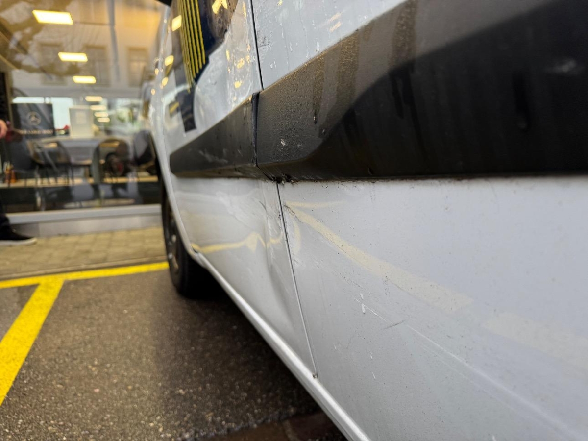 Aussenspiegel rechts, Das Fahrzeug hat rundum kleine Dellen, Beulen und Lackschäden, Diverse Gebrauchsspuren, Rücklicht rechts, Seitenwand rechts, Stossstange hinten, Türe vorne rechts