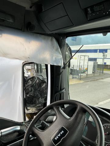 Seitenscheibe hinten links ist zerbrochen / beschädigt.
