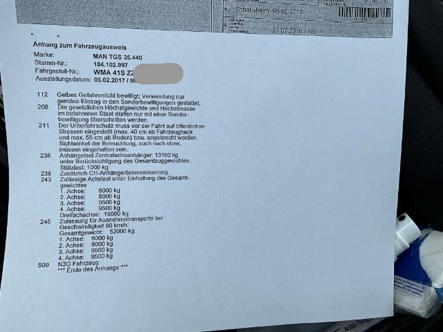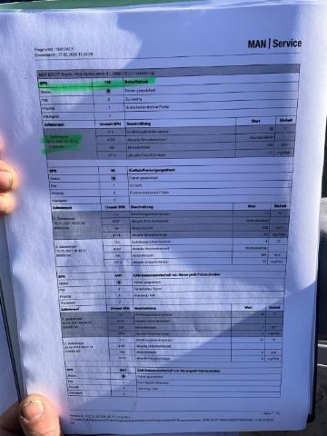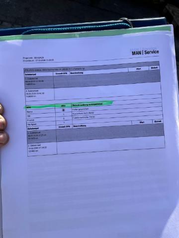 Motor Öldruck ausgelesen = Motor läuft siehe Protokoll unter Foto, Achsen Vermessen sind in Ordnung, Kipperbrücke öffnet und schliesst einwandfrei liegt in Waage, Fahrerhaus Dach links und Seitenwand links sowie Aufstieg links beschädigt. Alle sichtbaren Schäden siehe Fotos..