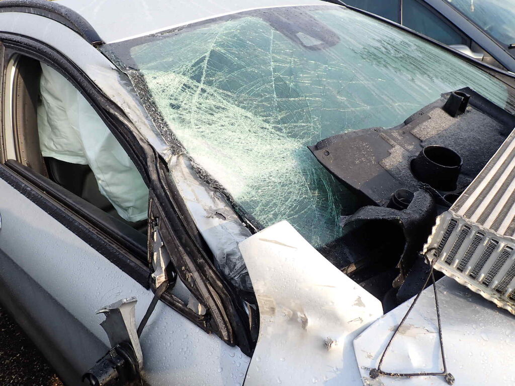 4 cinture esplose, 3 air bag scoppiati, possibile rischio al cambio e motore.