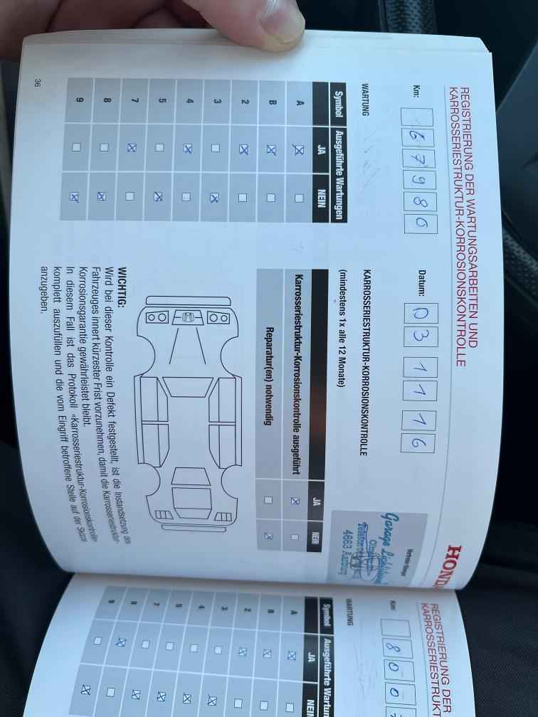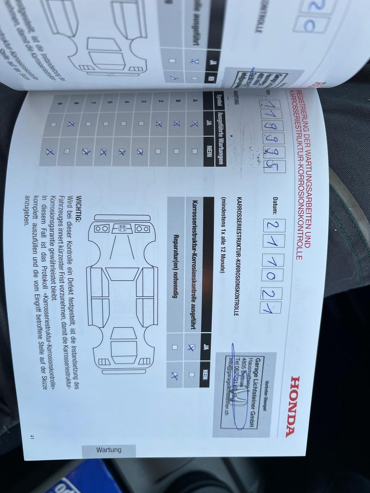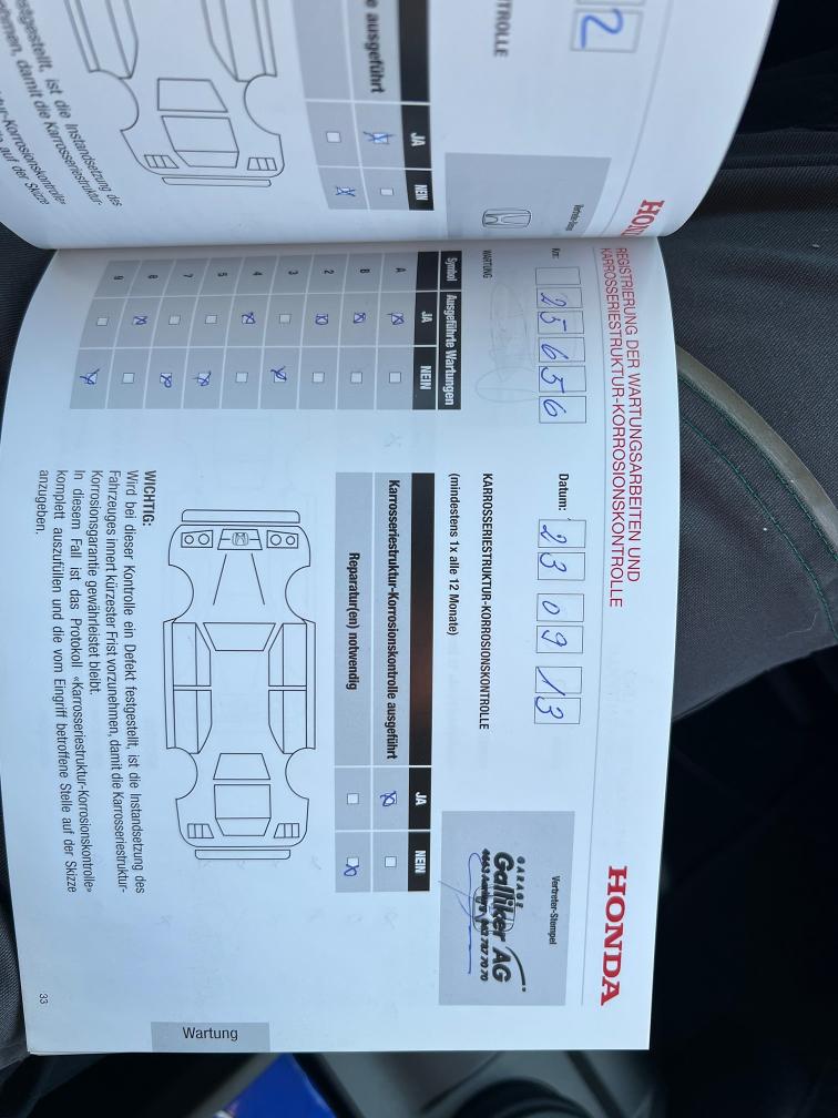 - Es wurde kein vollständiger Werkstatttest durchgeführt - Probefahrt i.O. (Motor, Getriebe, Fahrwerk) - Gebrauchsspuren Carrosserie gemäss Bilder - Fahrzeug technisch in einem guten Zustand, regelmässiger Service - Frontscheibe hat kleine Steinschläge, jedoch OHNE Rissbildung