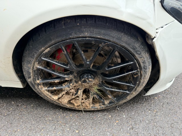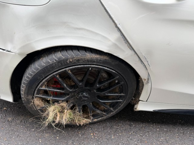 Rechte Seite beschädigt. Anstoss rechts im Bereich der C-Säule.