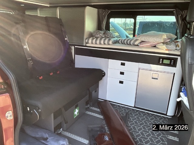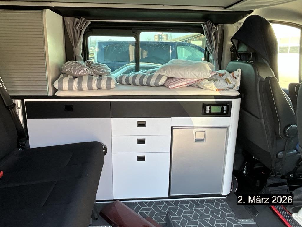 100% LED-Beleuchtung, geringer Stromverbrauch (12 Lichtpunkte), 12V-Steckdose und 9 USB-Anschlüsse, 220V-Steckdose für extene Stromversorgung, 3-Knopf-Schlüssel versenkbar, 3-Punkt-Sicherheitsgurte und Gurtstraffer, Ablage für Armaturenbrett und Türen, Ablage im Armaturenbrett, Airbag: Airbag Fahrer und Beifahrer, Anti-blockiersystem (ABS) mit Notbremsassistent und Bremskraftverteilung, Assist: Einparkhilfe hinten, Assist: Müdigkeitserkennung, Assist: Notbremsassistent, Assist: Rückfahrkamera, Assist: Tempomat mit Geschwindigkeitsbegrenzer, Aussendusche hinten am auto, Aussenspiegel rechts und links beheizt, elektrisch verstell- / und einklappbar, Autonomer Tisch für drinnen oder draussen mit passender Aufbewahrung im Kofferraum, Camper-Van mit 5 Sitzplätzen -Rücksiztbank 3 Plätze auf Schienen und 4 Schlafplätzen, Dashboard mit 4,2-Zoll-TFT-Farbmonitor, Dekor: Armaturenbrett Gris Météor, Dekor: Chrome Applikationen - Chromeinlage auf dem Schalthebel und den Umrissen der Bedienelementen der Klimaanlage, Dunkel getönte Scheiben hinten (35% Lichtdurchlässigkeit), Ebener Teppichboden vorne, Elektrische Fensterheber vorne mit Schnellsenktaste, Elektronisches Stabilitätsprogramm ESC) mit Extended Grip,Berganfahrhilfe, Anhänger Stabilisator und Antriebsschlupfregelung (ASR), Frischwassertank mit 60 Liter Volumen, Garantie: 12 Jahre Garantie gegen Korrosion (ab 1. Inv.), Garantie: 3 Jahre Lackgarantie (ab 1. Inv.), Garantie: 3 Jahre oder 100'000 km (ab 1. Inv.), Gaskocher-Herd mit zwei Flammen kombiniert mit Spüle und Wasserhahn, Getriebe: EDC automatisiertes 6-Gang- Doppelkupplungsgetriebe, Grosse Schubladen laufen leichtgängig unter der Sitzbank, Grosses Aufstelldach (Schlafdach mit Bett 120cm x 200cm) (Froli Bettrahmen), Gurtwarner für 1. Reihe und hintere Reihen, Heckklappe verglast, Heckscheiben-Wischer, Heckscheibenheizung, Klima: Manuelle Klimaanlage vorne, Klima: Öl-Heizung 2000W mit optimaler Funktionalität bis 2500m Höhe, Kofferraumabdeckung mit Hubzylinder, Kühlschrank mit 49 Liter Volumen, LED-Innenleuchten (Kabine), Lackierung: Matt-Lackierung Blanc Glacier, Lenkrad längs- und höhenverstellbar, Lenkrad: Lenkrad in Lederoptik, Licht- und Regensensor, Licht: Drittes Bremslicht, Licht: Full LED Scheinwerfer, Licht: LED-Tagfahrlicht, Licht: Nebelscheinwerfer, Licht: Nebelschlussleuchte, Markise (250 cm x 235 cm) Grand SpaceNomad, Media: Applikation R&, Media: Connected Services, Media: EASY LINK 8", Paket: Pack Look Komplett, Partikelfilter und Oxydationskatalysator, Polster: Stoff Java Noir, Polyester-Isolierung und Aluminium Verkleidung, Rollladenseitenschrank, Räder: Leichtmetallfelgen 17", Räder: Reifendruckkontrollsystem, Räder: Reifenreparatur-Kit (Tire Fit), Rückwand hinten verblecht (2 Seiten), Schiebeverdunkelungsvorhänge und Verdunkelungsvorhänge für die Kabine, Schubladen ", Seitenwand links verglast mit Schiebefenster, Servolenkung, Sitze: ", Sitze: Fahrersitz ", Sitze: Kopfstützen höhenverstellbar - Fahrer/Beifahrer vorne und alle hinteren Plätze, Sitze: Sitzbank hinten mit ISOFIX Kindersitzbefestigung, Sitze: Vordersitze drehbar, Solarpanel, Stopp-/Start-System, Stripping SpaceNomad, Teppichfussmatten vorne, Transformierbares Bett im Innenraum mit 135 cm x 185 cm für Grand SpaceNomad, Türen: Schiebetüre rechts mit Schiebefenster, Wegfahrsperre elektronisch, Zentralverriegelung der Türe mit Fernbedienung, Zusätzliche Batterie AGM 840 Wh