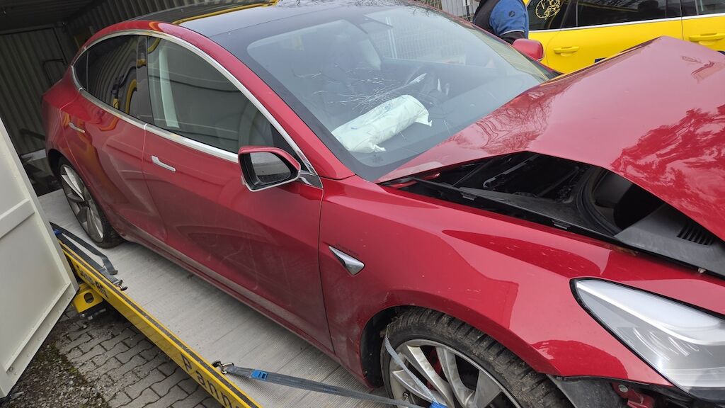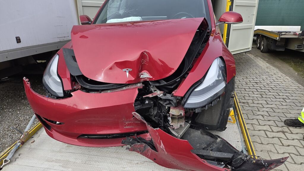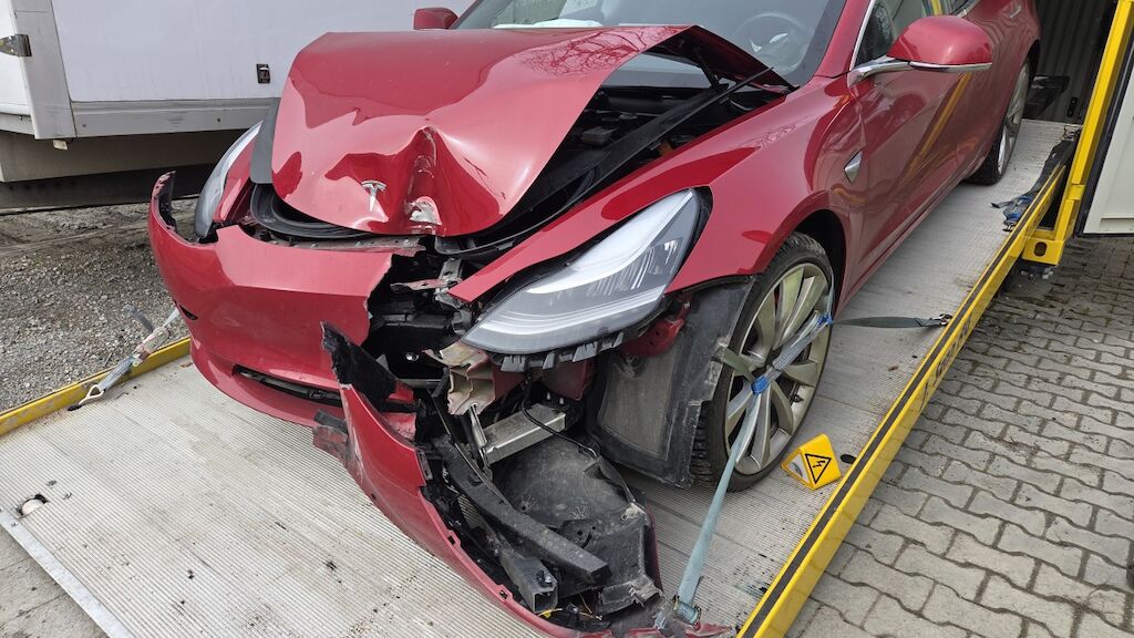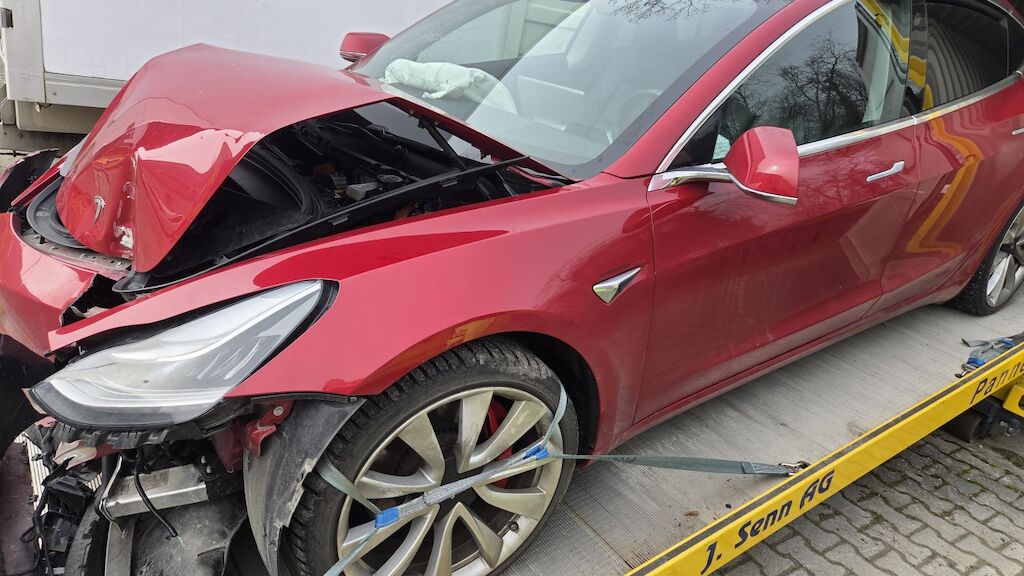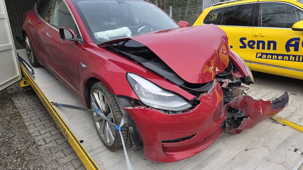 massiver Frontschaden: Front massiv deformiert, Haube Stossstange komplette Front eingedrückt, 2 Airbagshaben ausgelöst dementsprechend auch die Gurtsttaffer. Frontscheibe gebrochen, Powerfuse der Haupbatterie hat ausgelöst, dementsprechend kann keine Auskunft über den Zustand gemacht werden. Motor Getriebe Vorderachse Hinterachse Airbags ausgelöst: 2 unbekannt ( Abfallcode 16.01.04ak )