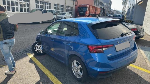Linke Seite beschädigt. Anstoss links im Bereich der A-Säule. Schweller links ist eingedrückt. Tür vorne links ist eingedrückt.