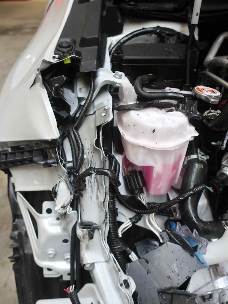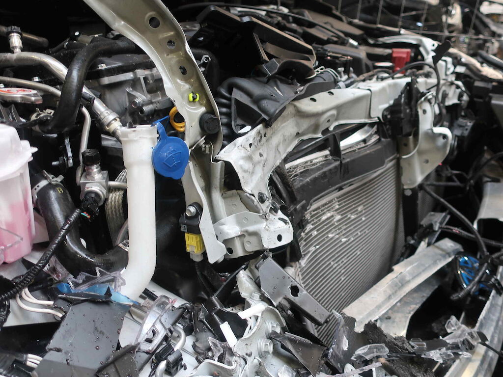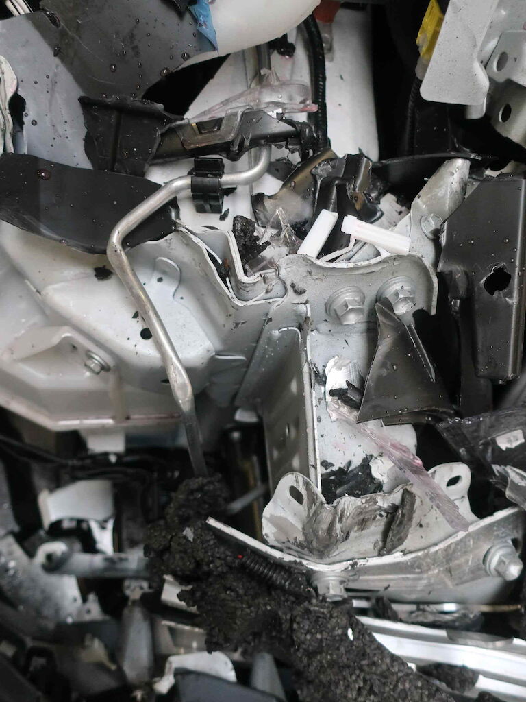 Beschädigungen: Motorhaube, Scheinwerfer vorne rechts, Beide Kotflügel vorne, Stosstange vorne komplett mit Träger, Frontrahmen, Längsholmen und Radhaus vorne rechts, komplettes Kühlerpacket vorne, Luftfiltergehäuse vorne, Türe vorne rechts, Frontscheibe, Airbag Fahrer und Beifahrer- sowie Beide Kopfairbag ausgelöst, Alle Gurtstraffer vorne und hinten ausgelöst, Türe hinten links oben steht leicht ab Keine Reparaturkalkulation erstellt da klarer und offensichtlicher Totalschaden vorliegt. Motor Getriebe Vorderachse Hinterachse Airbags ausgelöst: 4 unbekannt ( Abfallcode 16.01.04ak )