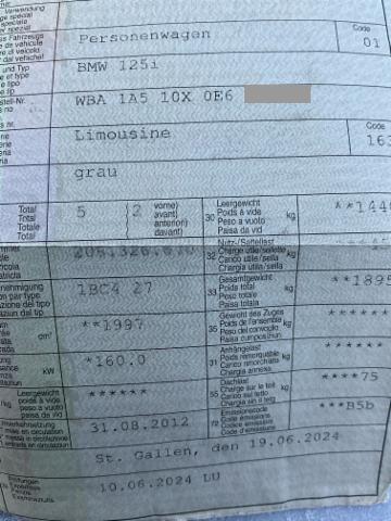 Klimaanlage inkl. Mikrofilter Fahrer und Beifahrer-Airbag Seitenairbag für Fahrer und Beifahrer Radio BMW Business CD Elektrische Fensterheber Aussenspiegel elektrisch verstellbar Nebelscheinwerfer vorne Dynamische Stabilitäts-Control DSC Cornering Brake Control CBC Sport-Lederlenkrad Bordcomputer Uni-Lackierung Reifenpannen-Anzeige Kopfairbags vorne + hinten Dynamische Traktions-Control DTC Lenksäule mit Höhen- und Längseinstellung ABS Antiblockiersystem inklusive Bremsassistent Interieurleisten Satinsilber matt Auto Start Stopp Funktion Bereifung mit Notlaufeigenschaft Rücksitzlehne geteilt umklappbar 40/20/40 Keine Gewähr auf die Angaben der Serienausstattungen Leichtmetallräder Y-Speiche 380 Pack Swiss-Premium