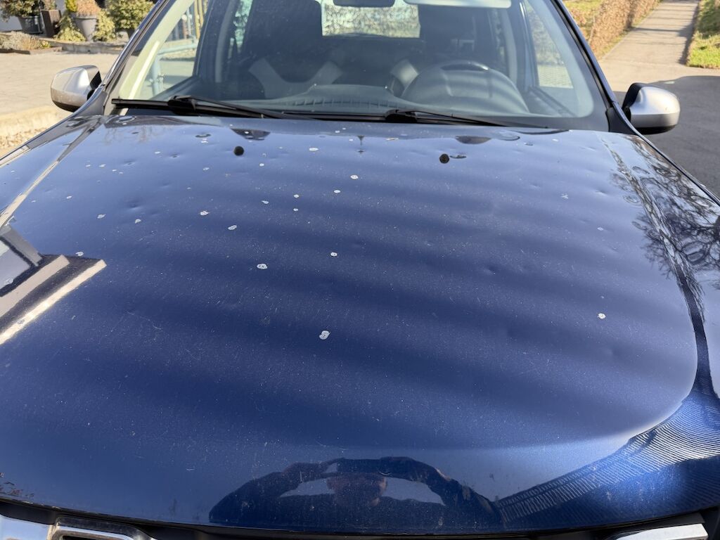 Starker Hagelschaden an folgenden Bauteilen: Motorhaube (L), Kotflügel l+r, Türe vl (L), Türe vr, Türe hl+hr (L) Seitenwand hl+hr (L), Heckdeckel ober-/unterhalb, Fahrzeugdach (L) Fahrzeug hat Harz an mehreren Fahrzeugteilen und div. Vorschäden siehe Foto. Motor läuft, Fahrzeug ist fahrbar. Aufzählung ist nicht abschliessend. Motor Getriebe Vorderachse Hinterachse Airbags ausgelöst: 0 unbekannt ( Abfallcode 16.01.04ak )
